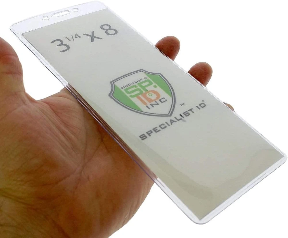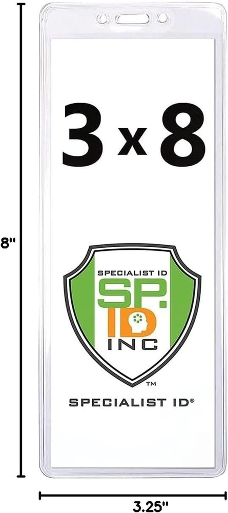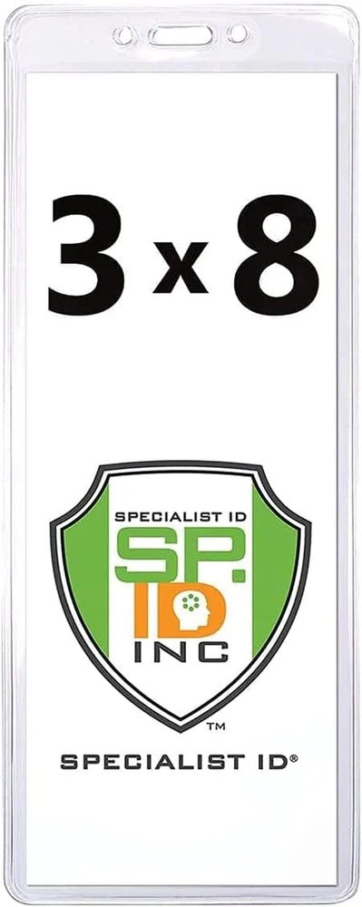 2 Pack - Heavy Duty 3X8 Ticket Badge Holder with Lanyard - Clear Plastic Extra LARGE 3 x 8 CREDENTIAL PROTECTORS - Protective Covers for Extra Large Inserts (Insert Size - 3 1/4 X 8 Outer Dimensions - 3 5/8 X 8 7/8") - Clear Transparent Vinyl - Display or Scanner Ready for Security Check In at Concerts, Festivals, Trade Shows, Sports Events, Tournaments and More LANYARDS INCLUDED! - Strong and Sturdy 3/8 inch Wide, Flat Braid Woven Non Breakaway Lanyard with Bulldog Clip Gripped to Your Vinyl Sleeve - 36" Total Length - You Can Look Like a Band Roadie Wearing Your Concert Tickets Around Your Neck GAME TICKET READY!!! - VERTICAL TOP-LOAD - Have Your Football, Baseball, Golf, Hockey Tickets, Special VIP Birthday Invitations, Trade Show Pass, Concert and Festival Tickets Ready to Go! STURDY AND FLEXIBLE VINYL - Tear Resistant Reinforced Edges for Durability - Toploader to Slide in your Paper Ticket, Stock Paper 3 x 8 Template, Game or Season Ticket KEEP TICKETS SAFE AND HANDY - Great for Outdoor Events - Protect Your Collectors Item Tickets from Rain, Scratches, Tears, Spills or Dirty Hands - Thin and Flat to Preserve and Store Away Your Ticket Stub Later for Safe Keeping Memorabilia Wear your season tickets, concert tickets and passes to be game ready with these extra large vertical badge holders with non-breakaway lanyards by Specialist ID. Designed to hold any oversize event ticket or badge up to 3 1/4" X 8" for safe keeping during and after the big event. Have great visibility and scanner access of your credential when attending a sporting event, concert, tradeshow, festival or party. Spacious and smart for ticket storage, keeping paper documents, name tag badge info or even business cards organized and protected from dust, dirt, rain, smudges, tears, etc. Thick and sturdy, yet flexible and lightweight for displaying or storing away. Great to use and reuse! 3.25 inches x 8.0 inches x 0.04 inches. Weight: 2.46 oz Closure Clip,Slide Closure Type Clip,Slide Number of Items 2 Color Black Material Vinyl Material Type Vinyl Manufacturer Part Number SPID-8150 Item Weight 2.46 ounces Product Dimensions 8 x 3.25 x 0.04 inches Size 2 Pack
