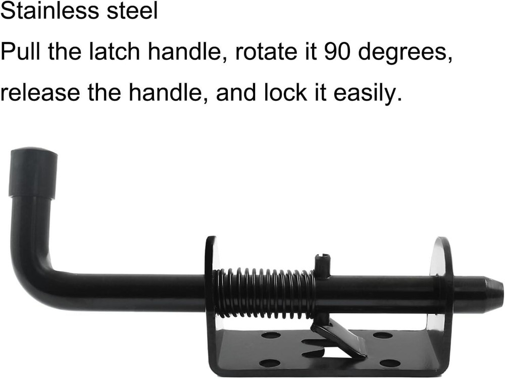 CONTACT US DIRECTLY FOR FREE & PREPAID RETURNS 2 Packs Spring Loaded Latch Pin, Heavy Duty Barrel Bolt Door Latch, Stainless St 2 Packs Spring Loaded Latch Pin, Heavy Duty Barrel Bolt Door Latch, Stainless Steel Barrel Bolt Door Lock, with Mounting Screws (5 Inch, Black) Description Part Number GAOC-0761 Batteries Required? No Color Black Material Wood, Stainless Steel, Metal, stainless_steel_304 Item Weight 10.2 ounces Batteries Included? No Color Name Black Pin type Cotter Package Dimensions 5.67 x 3.19 x 1.34 inches Number of Pieces 2 ✅ 【Package + Size】Package: 2pcs black spring loaded latch pin. With mounting screws. 5 inch length, pin diameter: 3/8 inch, assemble plate: 2-5/16” x 1-3/16”. ✅ 【High Quality Material】Barrel bolt lock is made of 304 stainless steel, it is not easily deformed, has a large load-bearing capacity, and can be used in harsh weather. It has a long service life, is corrosion-resistant, and rust proof. ✅ 【Easy to Use】The spring designed latch can be easily opened and closed. Pull the latch, rotate it 90 degrees, release the handle, and lock it in the cotter pin to keep the door open. The handle is equipped with a rubber sleeve to increase friction and open the door. ✅ 【Wide Application】The barrel bolt latch can be used both outdoors and indoors, suitable for wooden doors, metal doors, shed doors, carriage bolts, mechanical bolts, industrial purposes, etc. ✅ 【Excellent After-Sales Service】We offer a 30-day return and replacement service. If you have any questions, please feel free to contact us, we will try our best to help you, thank you very much for your support! LITOPEXPE's dream is to bring customers a happy shopping experience and the most cost-effective products, please trust and choose us! Specifications Product Name: Spring Loaded Barrel Bolt Latch Pin Material: Stainless Steel Color: Black Package: 2pcs Spring Loaded Latch Pin Note: (1)The colors may have difference as the different display, please understand. (2)Please allow 1-2mm error due to manual measurement, please make sure you do not mind before you bid. After-Sales Guarantee We are committed to meeting the shopping needs of every customer. If you are not satisfied with the product you purchased, we will provide you with a 30 day refund or replacement. If you have any questions about the product, please feel free to contact with us and we will be pleased to answer them for you. REVIEWS The product came very well packaged. I'm very happy. thank you for everything. Seller strongly recommended. This is great! I definitely recommend! Product looks amazing Delivery was fast. Excellent seller, great communication. I advise everyone