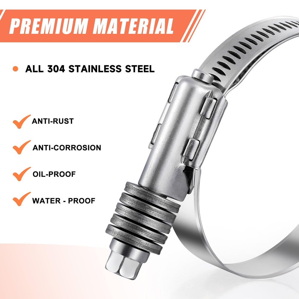 2 Pack Worm Hose Clamp, Adjustable Range 3 1/2"-4 5/16" (90-110mm) 310 Stainless Steel Worm Gear Drive Hose Clamps for Water Pipe, Plumbing, Automotive and Mechanical Application