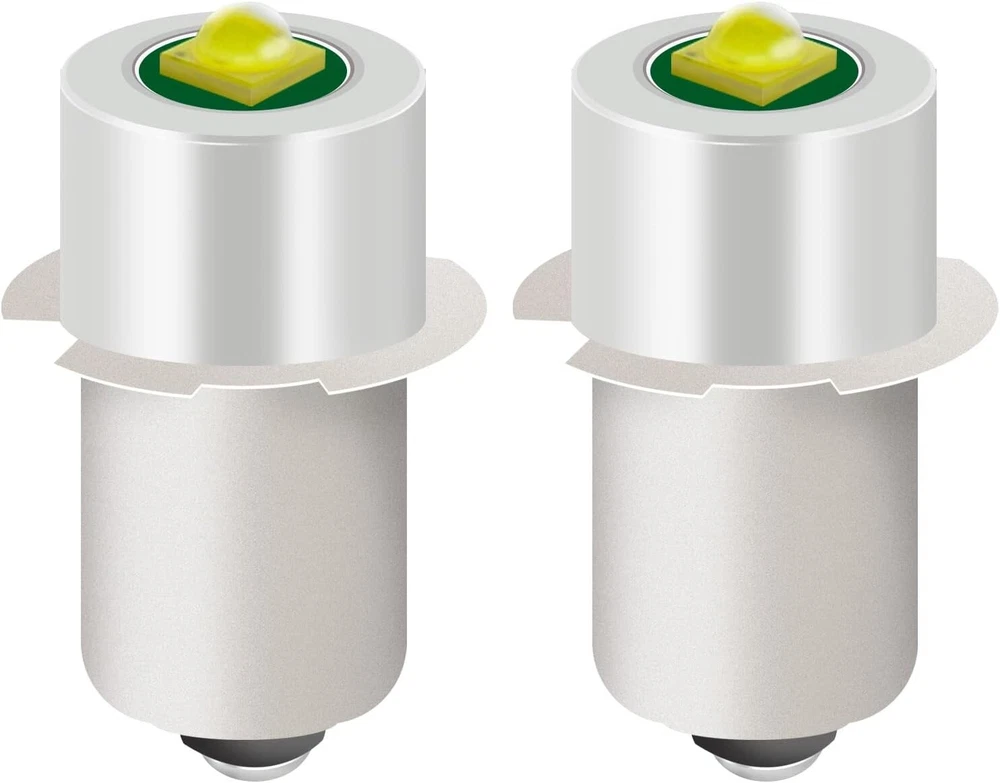 2 Pack LED Flashlight Replacement Bulb with 18V 12V 19.2V 6-24 Volt and 3W 247LM and PR2 P13.5S LED Conversion Kit Compatible Ryobi Milwaukee Craftsman Lamp Torch Lantern Work Light Specific Uses For Product Lamp,Lantern Brightness 247 Lumen Wattage 3 watts Item Package Quantity 1 Light Source Type LED Color Temperature 6000 Kelvin About this item Wide Compatibility:P13.5S DC 3W 6-24V Cree LED flashlight bulbs replacement, YAFIYGI LED flashlight replacement bulb Perfect replacement for indoor lights, bikes, flashlights, flashlights, work lights and more Super Bright Bulb:This LED flashlight bulbs replacement lights up your path with pure white light and high power LED bulb 247 lumen output instead of the dull yellow of incandescent bulbs Powerful and long-lasting:YAFIYGI LED flashlight replacement bulb high power flashlight, the new upgraded bulb is long-lasting and reliable, estimated to last 50,000 hours Cautions:This YAFIYGI LED flashlight replacement bulb is positive (+) at the bottom and negative (-) at the side, please check your flashlight before ordering Quality assurance:If you are not satisfied with our LED flashlight replacement bulb for any reason, please contact us. We will deal with your problem in a timely manner and give you a pleasant shopping experience