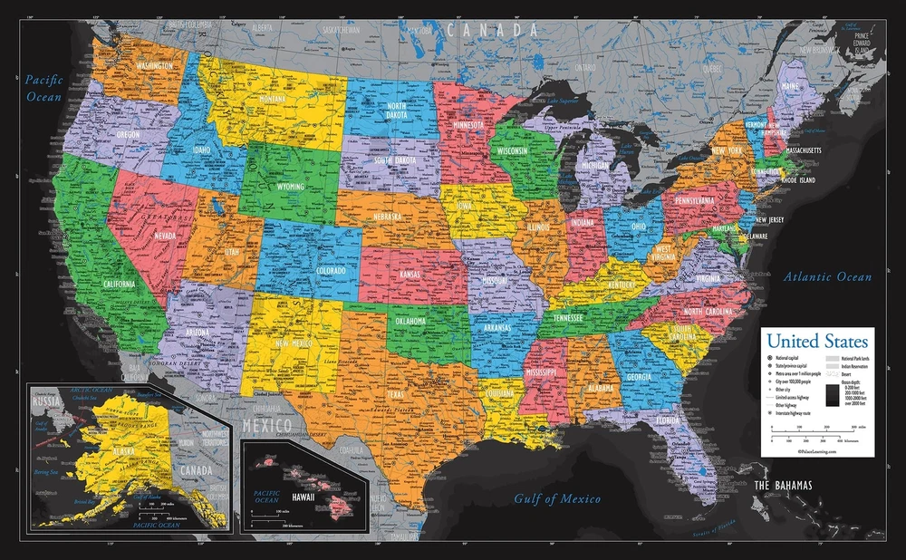 2 Pack - Laminated World Map & US Map Poster Set - Wall Chart Map of the World & United States - Made in the USA [Black] Set of 2 Posters Made in the USA Maps are 18” x 29” in size High-quality 3 MIL lamination for added durability Tear Resistant Miller Map Projection