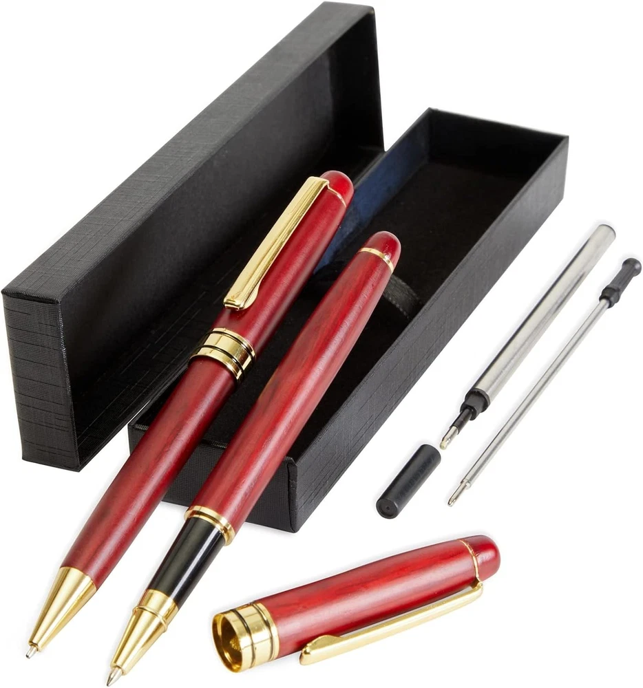 Store New Arrivals Add to Favorite View Feedback Contact 2 Pack Luxury Rosewood Pen Sets for Men Gift - Fancy Nice Ballpoint Pens with Black Ink Refills for Signature Executives Business Office Description Closure Click-Off Cap, Twist Item Weight 2.4 ounces Writing Instrument Form Ballpoint Pen Number of Items 5 Color Brown Line Size 0.7 Millimeters Material Type Wood Manufacturer Part Number TS Ink Color Black Age Range (Description) Adult Is Discontinued By Manufacturer No Point Type Medium Product Dimensions 5.71 x 0.39 x 0.39 inches Size 2 Count (Pack of 1) Luxury Wooden Pen Gift: This set includes two pens crafted from high-quality rosewood with a cherry red finish. One pen has a twist mechanism, while the other has a cap. These pens are well-suited for executives, offices, businesses, and signatures Enhance Your Handwriting: Each pen in this stylish set ensures smooth and crisp handwriting. The 0.7mm ballpoint tip provides a smooth writing experience for all your important tasks Decorative Box Included: The set comes with a beautiful decorative box featuring an inner black lining that elegantly showcases both pens. It adds an antique-inspired touch to the executive pen set Great for Gifts: This vintage-style rosewood pen set makes a great gift for fathers, colleagues, writers, friends, coworkers, partners, spouses, or loved ones. It's suitable for graduations, birthdays, or office parties What's Included: Double the Luxury. This set includes two pen sets for men gift and two extra refills. Making it as an ideal gift for professionals who frequently require a signature pen Product Description Luxury Rosewood Pen Set Gift in Style with Our Double Antique-Inspired Rosewood Pen Set Give these vintage-style pens as a gift to your colleagues, writers, friends, or partners for graduations, birthdays, or as giveaways at office parties. Elevate Your Writing Experience Experience the ultimate writing luxury with our classic executive pens made from high-quality rosewood. Perfect for home, office and business use. Make a Statement with Our Rosewood Ballpoint Pens Our antique-inspired executive pens come in a decorative box with an inner black lining that elegantly showcases both pens in the set. ABOUT US We offer the best prices around on high quality products. Our E-store includes media such as books, movies, music and games while offering electronics, toys, sporting apparel, clothing, tools, general home, garden items and more. SHIPPING We are always working hard to ensure your package arrives as soon as possible. Please understand that some factors like weather, high postal traffic, and the performance of shipping companies are outside of our control. We offer free shipping to the lower 48 states and ship within 2 business days of payment, usually sooner. We do not accept P.O. Boxes. Please provide a physical address. For shipping outside of the continental USA, we only use eBay's Global Shipping Program.The item is shipped to KY and then sent to the rest of the world. International customers are responsible for all duties and taxes. Continue to check out in order to calculate costs for shipping the item to your country. Messages regarding eBay's Global Shipping Program MUST be directed at eBay EXCLUSIVELY. RETURNS We offer a 30-Day Return Policy on items which you are not completely satisfied with. You have the option for a full-refund or an exchange of the item. No returns are available on items shipped outside of the USA. PAYMENT We accept PayPal. CONTACT US This page content is yet to come Please ad us to your favorite seller and visit again later Thank You CUSTOMER SATISFACTION We try our very best to make sure every customer is completely satisfied. If there's a problem, message us! We're happy to help. WE ACCEPT Copyright © 2021 AutoDS. | All Rights Reserved