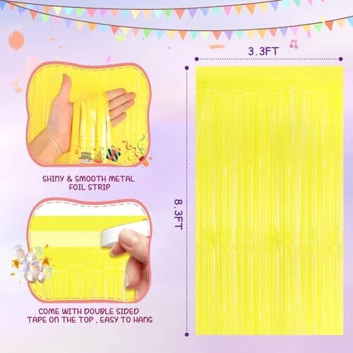 Return Policy Fast Delivery Trusted seller Yellow 2 Pack Metallic Tinsel Foil Fringe Curtains, 3.3x8.3 Feet Yellow Streamers for Party, Door Streamers Party Decorations, Party Streamers for Birthday Christmas Party Decorations Product Description Add a touch of glamour and excitement to your next party or event with our Party Streamers Foil Fringe Curtain. This package includes 2 packs of aluminum foil tassel curtains, each measuring 3.3*8.3ft, ensuring that it's long enough for any occasion. Please note that it's important to avoid sticking the aluminum foil curtains to uneven or stained walls to prevent them from falling off. Perfect for a wide range of occasions, our glittery foil fringe curtain is ideal for New Year celebrations, Birthdays, Christmas festivities, Halloween parties, Anniversaries, and more. Transform any party or event into a dazzling spectacle with our Party Streamers Foil Fringe Curtain. Grab yours now and create the perfect backdrop that will leave your guests in awe and make your special occasion truly unforgettable. Let your creativity shine with our Party Streamers Foil Fringe Curtain. These curtains can be combined in different colors to achieve the exact color background you desire. Create a bold statement with striking color combinations, or keep it simple and elegant with a single tone. Our curtains provide the perfect canvas for you to showcase your creativity and set the stage for a memorable party or event. Crafted from aluminum foil, these streamer backdrop curtains are durable and safe. They are suitable for families with children and pets. The wide cut of these curtains ensures that they won't easily strip down and are easy to store for future use. Assembling our Party Streamers Foil Fringe Curtain is a breeze. The back of the tassel curtain features double-sided tape, allowing you to securely stick it to walls, tables, door frames, and more. You can easily cut out the desired length with scissors, and for a unique touch, stitch and overlap multiple curtains to achieve unexpected and stunning results. Shipping Returns Payment Shipping Shipping is FREE to all addresses other than APO/PO boxes in the lower 48 states. All our stock ships from US-based warehouses. Shipped via USPS or UPS (depending on location and package weight) Unless stated otherwise, all orders will ship within 24-72 hours of your payment being processed. Check our feedback to see the great reviews of FAST shipping we offer. Returns Seller does not accept returns Payment We currently accept payment via eBay managed payments only. Once payment is cleared, we will dispatch your shipment within 1-3 business days. Please refer to the "Shipping" tab for more information regarding shipping speed to your destination.