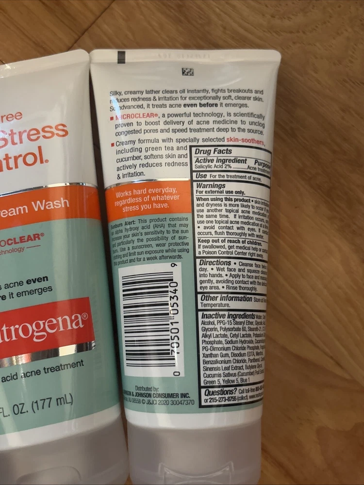 2 Pack Neutrogena Oil-FreeAcne Stress Control Power-CreamFace Wash 6 fl. oz.