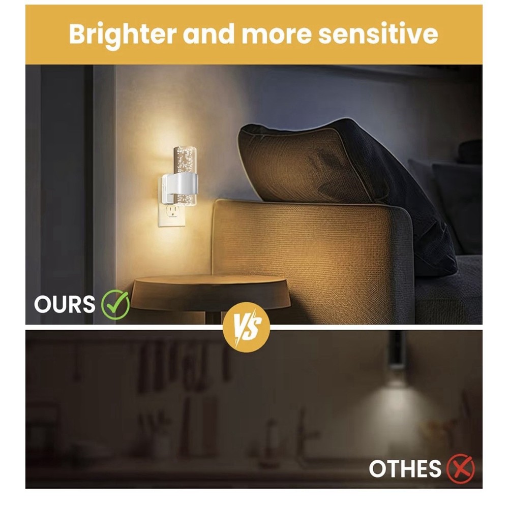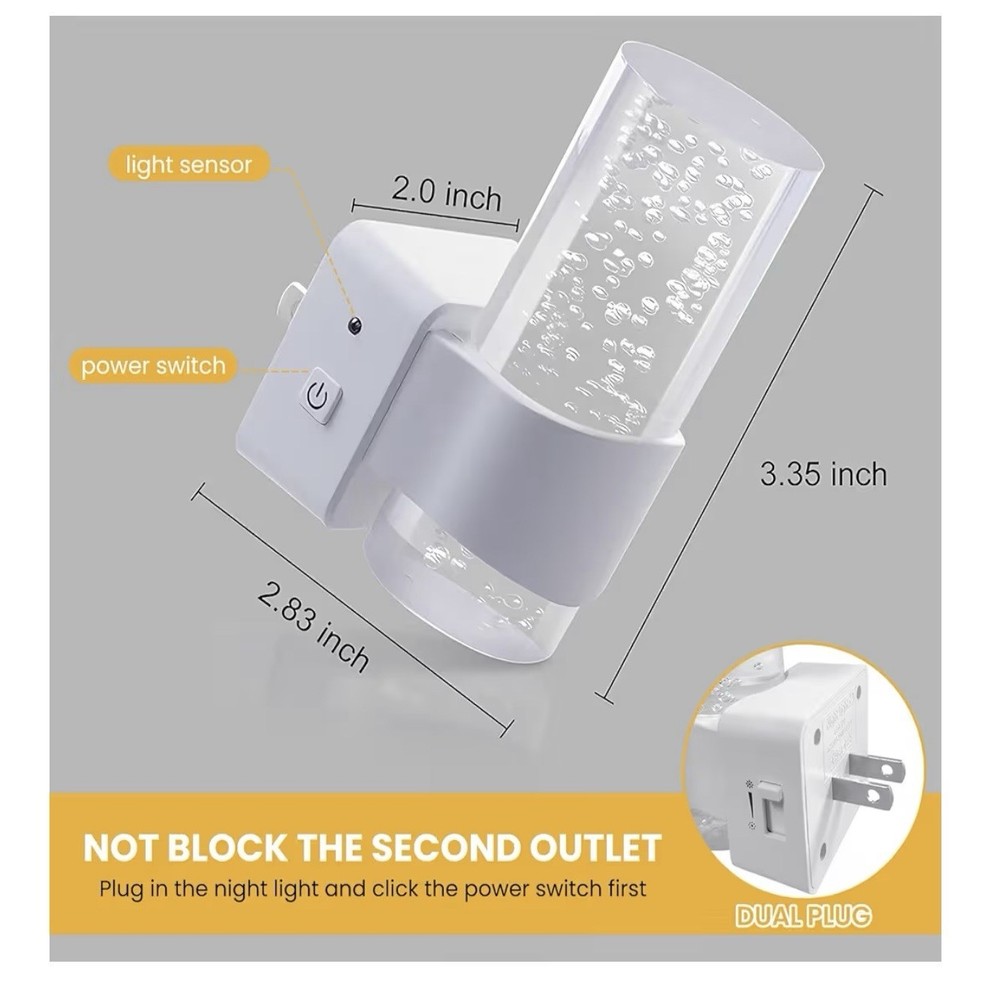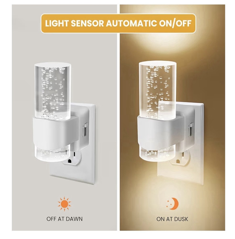JIURUN 2 Pack Night Lights Plug into Wall, Dimmable LED Night Light with Dusk to Dawn Sensor, Plug in Night Light Brightness Adjustable, 3000K Acrylic Nightlight for Bathroom Hallway
