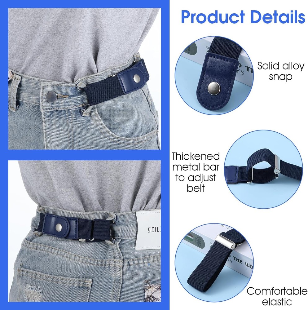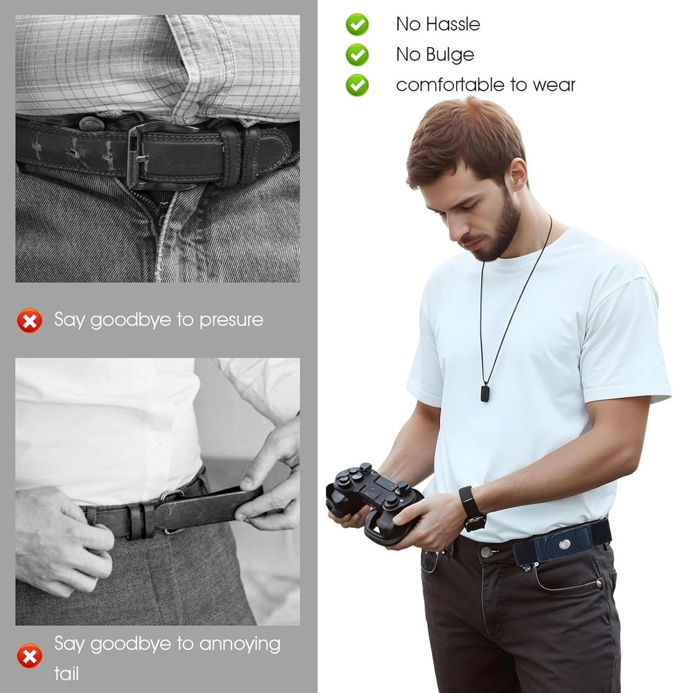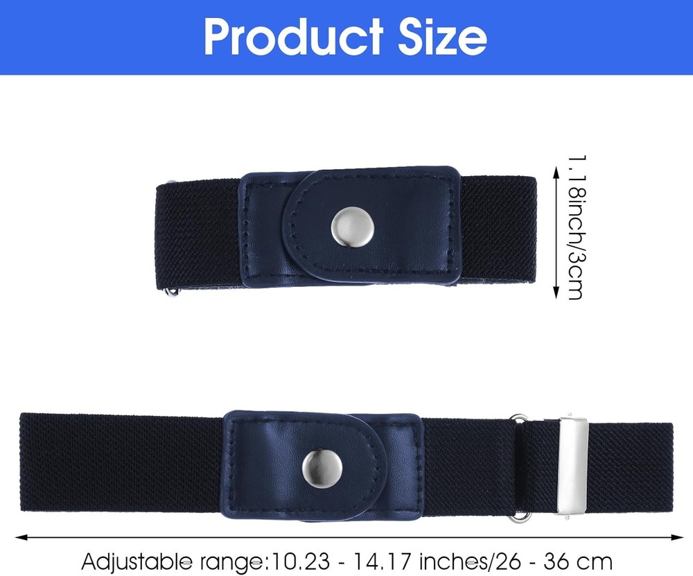 Ptwola 2 Pcs No Buckle Elastic Belt Men Side Belts Without Buckle Elastic Stretch Adjustable Belt Belt Invisible Belts Waist Tightener Keeper Fit 1.5 Inches for Women Jeans Pants Product Introduction Category: Belt Color: Black Material: Nylon, Zinc Alloy, PU Function: Elastic elastic belt, adjustable size Product size: Width about 1.18 inches/3 cm; Adjustable range in natural state: 10.23 - 14.17 inches/26 - 36 cm Packing list: 2pcs × belt Product details 1. The size of side belt is suitable for 1.5-inch jeans. Stretch belts for men have high-end and fashionable design. Elastic belt can be perfectly invisible under your clothes. Buckleless belts for women will not produce bulges under clothes, and elastic belts for women make you more comfortable to wear. 2. This groove belt can be matched with a variety of styles of pants, men accessories belt can make your movements more convenient. You can use arcade belt while working and driving. 3. These mens belts stretchable are extremely convenient to use. No buckle belts for men are no need to buckle and unbuckle the belt when going to the toilet. Wear adjustable belt once and you can experience all-day comfort.