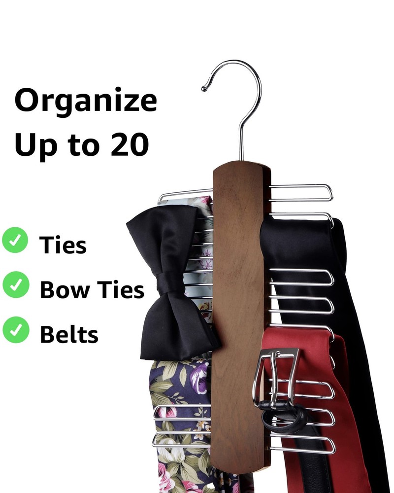 2 Pack Premium Wooden Necktie and Belt Hanger, Walnut Wood Center Organizer and SECURE: Securely holds your tie, belt, or scarf collection and is a huge space saver by holding 20 of your ties, belts or scarves. The tie rack is a helpful closet organizer. VERSATILE: The tie organizer is not just for ties, but can be a belt organizer or scarf organizer. Stop having to sift through a bundle of ties and organize them with our tie hanger. DURABLE: The high quality finish of the tie rack's wood will not disappoint. The smooth finish to the dark oak wood adds an added elegance to show off your tie collection. The tie holder will look fantastic in your closet. EASY: Every tie is accessible at every angle. No need to struggle with moving the hangers around to find your tie. With 360 degrees of access, the perfect tie awaits! WE COUNT WITH AMAZING CUSTOMER SERVICE: We want to make sure you love your closet organizer. Please reach out with any feedback you may have, we love hearing from you. This tie rack is an ideal solution for organizing your ties and belts. Clean up your closet of ties. Shipping We offer FREE shipping on all orders! We ship within Three business days of payment, usually sooner. We use a selection of shipping services such as UPS, FedEx, USPS etc. We only ship to the lower 48 states, no APO/FPO addresses or PO Boxes allowed. Local pickups and combined shipping options are not provided at this time. Return You can return a product for up to 30 days from the date you purchased it. Any product you return must be in the same condition you received it and in the original packaging. Please keep the receipt. Payment We accept payment by any of the following methods: PayPal Please pay as soon as possible after winning an auction, as that will allow us to post your item to you sooner! Feedback Customer satisfaction is very important to us. If you have any problem with your order, please contact us and we will do our best to make you satisfied. Contact Us If you have any queries, please contact us via ebay. We usually respond within 24 hours on weekdays. Please visit our eBay store to check out other items for sale! Thank you for shopping at our store.
