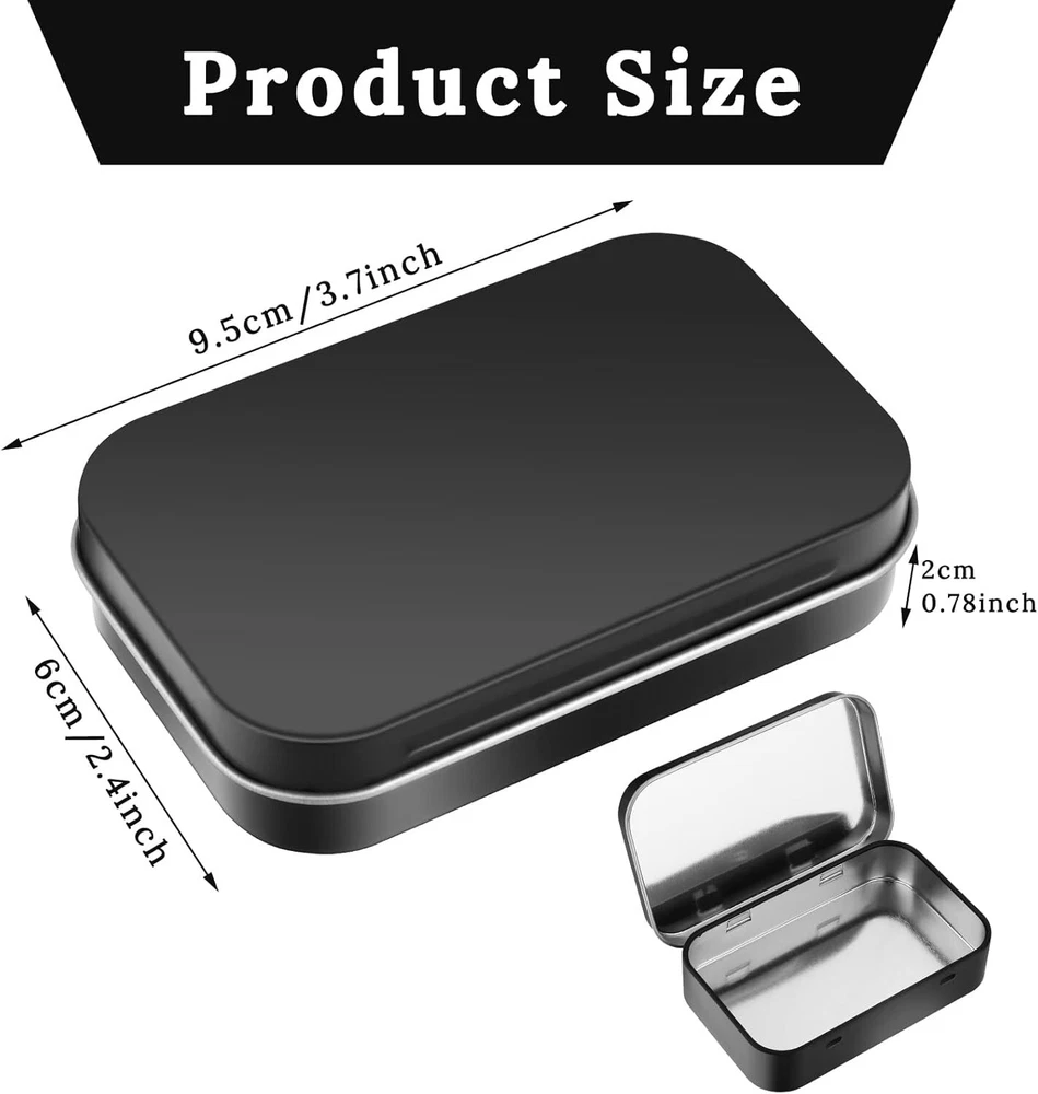 2 Pack Small Tin Box, Metal Rectangular Empty Hinged Tins Metal Tin Box with Lid Durable Materials: Small tin box is made of durable tin plated steel with 4 rounded edges smooth to protect your hands from damage. Sturdy and durable, rust-resistant for long-term storage and use Safe & Easy to Open: The metal tins with lids feature a hinged connection between the body and the lid, that makes it easy to open or close the box, and provide a tight seal to keep your precious items safe Portable Design: Our tin box with lid size is about 5*6*2cm/3.7*2.4*0.78inch, compact and portable, easy to carry in your handbags. Good for traveling to store the necessary items Widely Used: Metal tin box container can be applied to store all kinds of small things, such as lip balms, mini candles, candy, keys, fishing lures or hooks, nail art, a small gift or any other gadgets Shipping We offer FREE shipping on all orders! We ship within Three business days of payment, usually sooner. We use a selection of shipping services such as UPS, FedEx, USPS etc. We only ship to the lower 48 states, no APO/FPO addresses or PO Boxes allowed. Local pickups and combined shipping options are not provided at this time. Return You can return a product for up to 30 days from the date you purchased it. Any product you return must be in the same condition you received it and in the original packaging. Please keep the receipt. Customer satisfaction is very important to us. If you have any problem with your order, please contact us and we will do our best to make you satisfied. Contact Us If you have any queries, please contact us via ebay. We usually respond within 24 hours on weekdays. Please visit our eBay store to check out other items for sale! Thank you for shopping at our store.