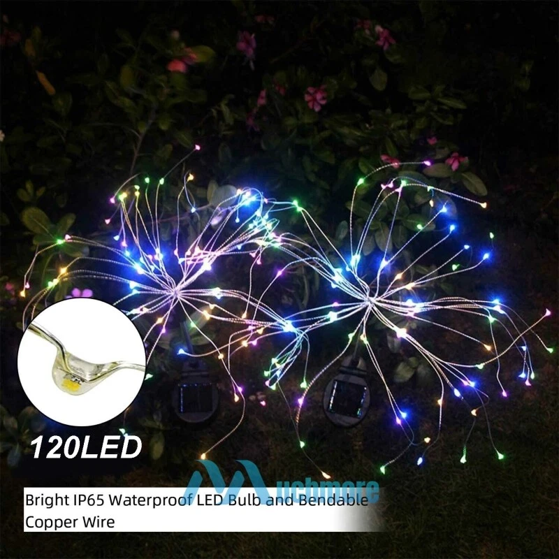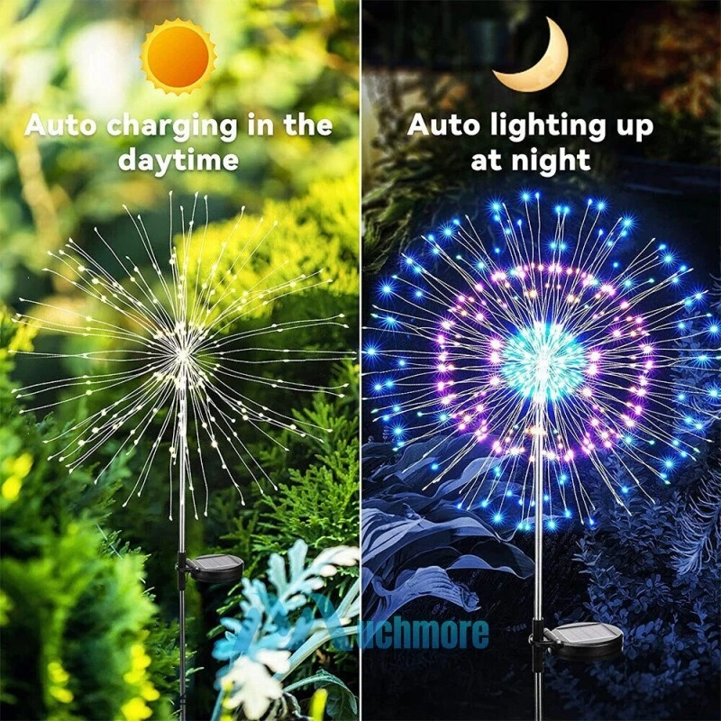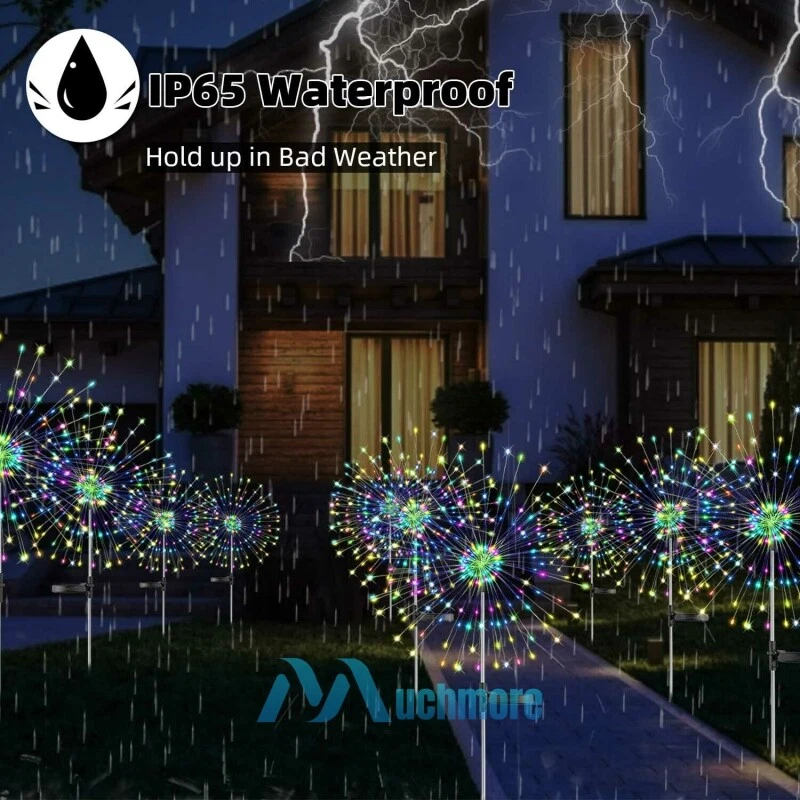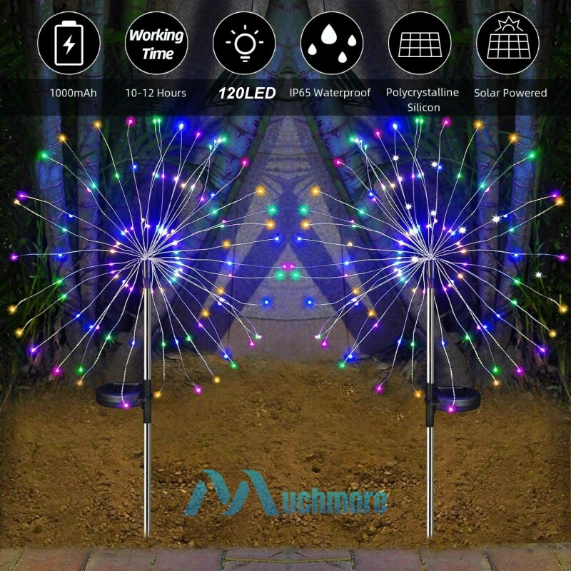 gtin13: Does not apply Installation Area: Outdoor Light Shape: Firework Color: Multicolor Power Source: Solar Power Consumption: 4 W or Less Features: DIY, Easy To Install, Flexible, Solar, Waterproof Sensor Type: Light Light Color: Multi-color Brand: MUCH Lighting Technology: LED IP Rating: IP65 Department: Adults Occasion: Multipurpose Type: Solar Powered Fireworks Lights UPC: Does not apply