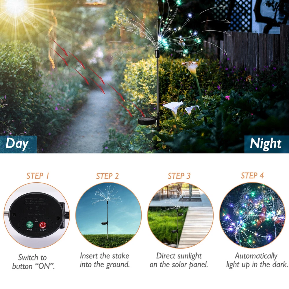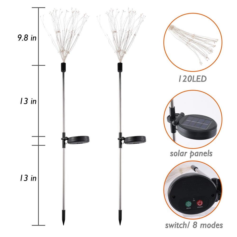 2 Pack Solar LED Firework Sparkle Lights for Outdoor Garden Path Lawn Decor