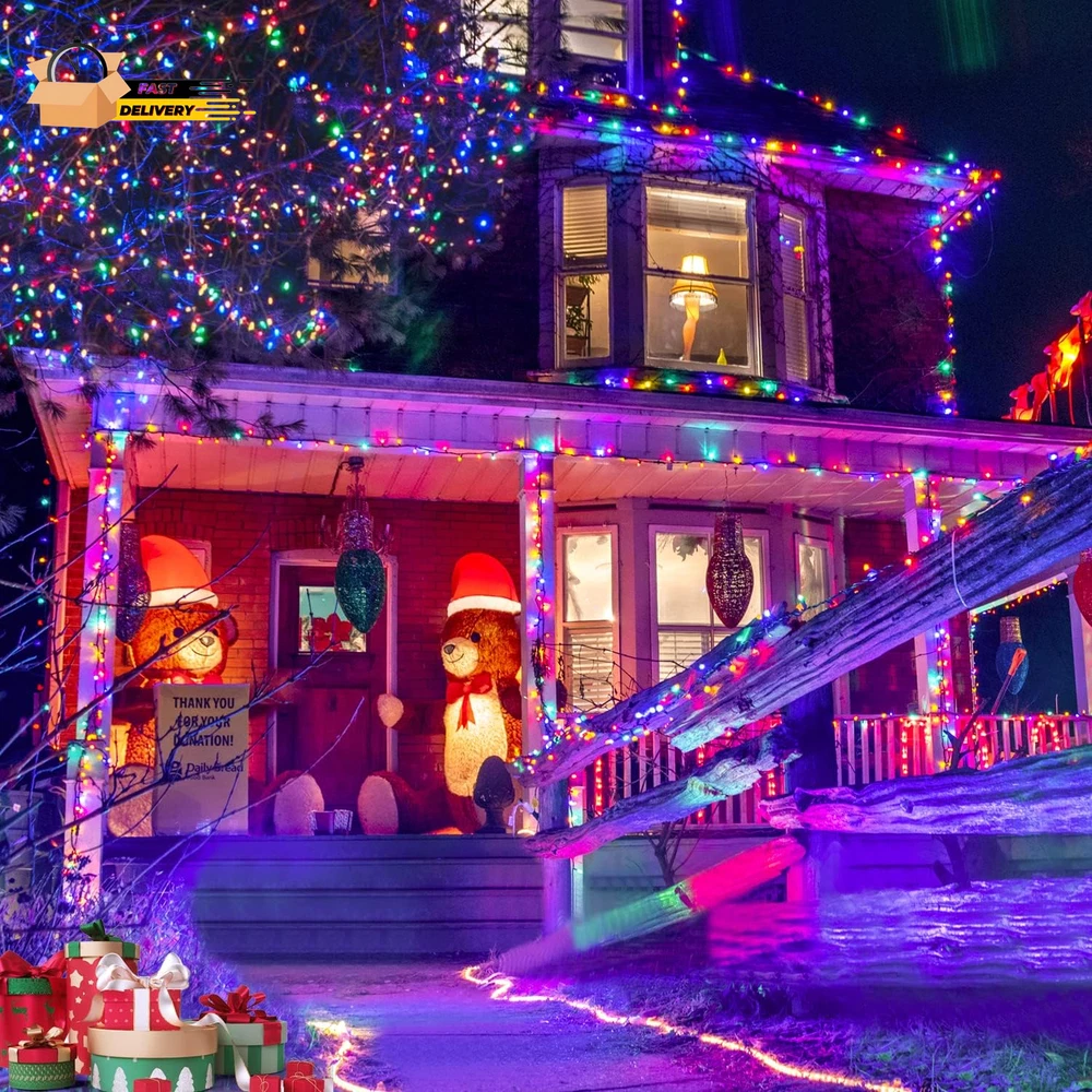 2 Pack Solar String Light 100LED 32.8Ft 8 Modes Solar Christmas Lights Waterproo