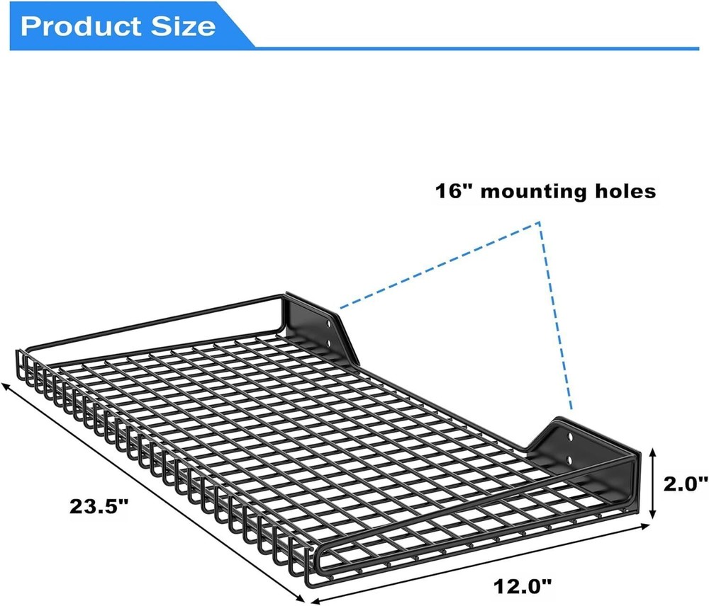 2 Pack Storage Shelves Shelving Heavy Duty Garage Closet Wall Mounted Black New Room Type Garage, Closet Number of Shelves 2 Special Feature Heavy Duty Product Dimensions 12"D x 23.5"W x 2"H Finish Type Powder Coated Product Care Instructions Wipe with Dry Cloth Size 12*23.5" Weight Limit 65 Pounds Assembly Required No About this item Maximize Floor Space: Wall-mounted shelves provide storage and free up floor space in garages, closets and laundry rooms. Get clutter off the floor and organize your space with wall shelves. Sturdy Shelves: Our garage wall shelves are constructed from high quality steel with a powder coated finish. Holds up to 65lbs per shelf. Easy Install: Comes with all screws needed. Mounts directly to studs for weight support. Configure shelves vertically or horizontally based on desired height. Quick and simple installation. Secure Storage: Wall mounted shelves feature folded edges to securely hold items in place. The folded edge design prevents stored objects from sliding off. You may also like Heavy Duty Folding Table Portable Indoor Outdoor Easy Storage Stain Resistant US 96.56 USD 106.9 USD Free shipping 10% off 450lbs Mini Trampoline Adults Indoor Rebounder Fitness Exercise Quiet Bounce New 84.49 USD Free shipping 8 Quart Slow Cooker w/ Removable ceramic crock Kitchen Countertop Cooker 79.79 USD 88.33 USD Free shipping 10% off Outdoor Extension Cord 120ft Light Duty 16 Gauge 2 Prong Water Resistant New 48.48 USD 51.03 USD Free shipping 5% off 5 Speed Glass Blender 48Oz Jar 500W Ice Crush Mix Chop Pulse Stainless Steel New 33.88 USD 35.66 USD Free shipping 5% off Stainless Steel Cat Litter Box Large Non Stick Odor Free Easy Clean Anti Slip US 49.0 USD 51.58 USD Free shipping 5% off 3PC Decorative Floating Shelves Set Wall Mount Black Plastic Home Office Display 16.66 USD 17.54 USD Free shipping 5% off Cool Mist Humidifier Filter Free Quiet Small Room Vapor Comfort White Plastic US 72.46 USD 76.27 USD Free shipping 5% off 21" Ceramic Oval Platter Dishwasher & Microwave Safe Stoneware Kitchen Decor New 30.49 USD 32.09 USD Free shipping 5% off Antibacterial Hand Wipes Individually Wrapped Travel Fresh Scent 144 Wipes New 28.98 USD 30.5 USD Free shipping 5% off Grain Free Salmon Pea Recipe Dry Dog Food All Breeds 11lbs Nutritious Kibble New 25.79 USD 27.15 USD Free shipping 5% off Medium Oval Galvanized Tub W/ Rattan Handles Storage Party Display Ice Bucket US 18.84 USD 19.83 USD Free shipping 5% off