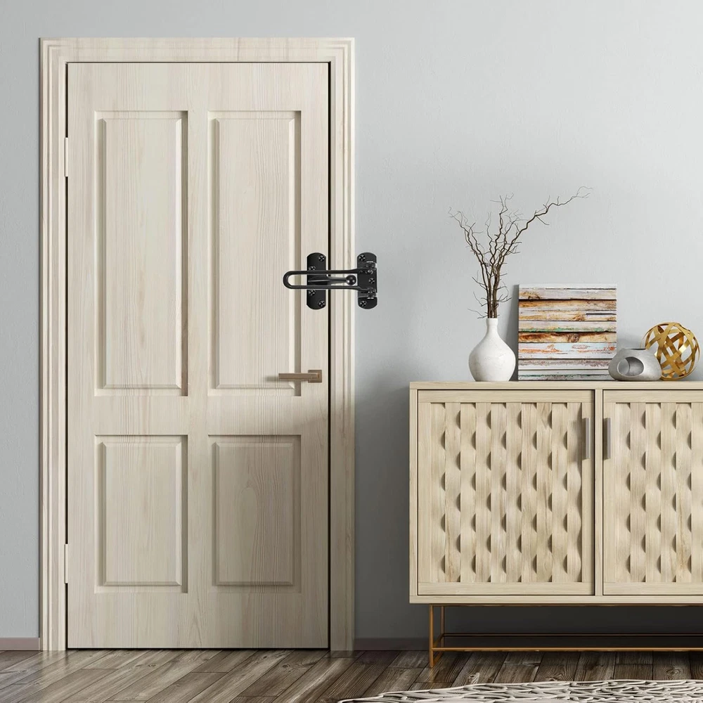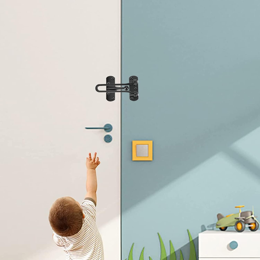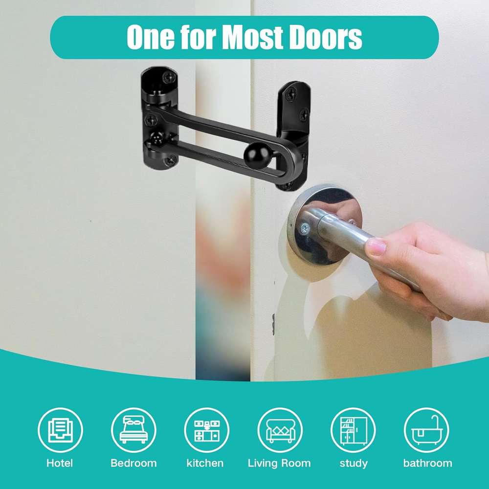 This swing bar lock is a game-changer for home security! Super easy to install, no tools needed, and it keeps my little ones safe from wandering out. The sturdy black metal feels durable, and it works perfectly on swing-in doors. Love that it comes in a 2-pack—great value for added peace of mind. Highly recommend for parents or anyone wanting extra door reinforcement!