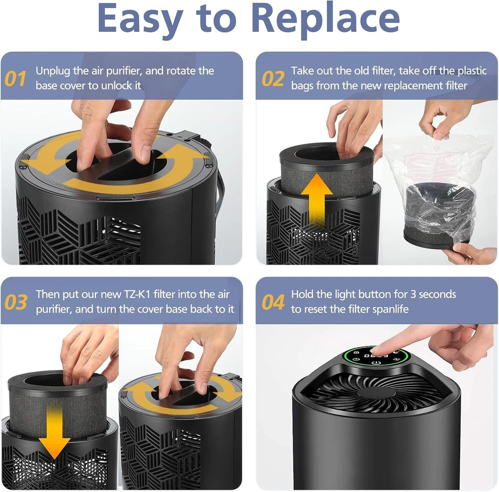 2 Pack TZ-K1 True HEPA Replacement Filter Compatible with FreAire Black