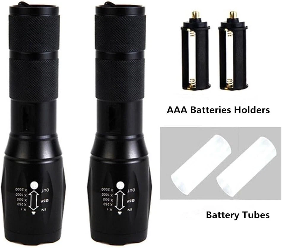 Store New Arrivals Add to Favorite View Feedback Contact 2 Pack Tactical Flashlights Torch, Military Grade 5 Modes 3000 High Lumens Led Waterproof Handheld Flashlight for Camping Biking Hiking Outdoor Home Emergency Description Light Source Type LED Item model number 2 Pack Tactical Flashlight Torch, Warranty Description No. Power Source Battery Powered Battery Cell Composition Lithium Ion Light Path Distance 200 Meters Country of Origin China Batteries Included? No Special Features Long Range Batteries Required? Yes Bulb Shape Size T Product Dimensions 6"D x 4"W x 1.7"H Material Aluminum, Rubber Number of Batteries 3 AAA batteries required. Is Discontinued By Manufacturer No Manufacturer ThuZW Item Package Quantity 1 White Brightness 3000 Lumens Brightness 3000 Lumen Water Resistance Level Waterproof Item Weight 6.5 ounces Battery Description / Special Feature Long Range Description Pile / Bulb Base Wedge Color Black Part Number NAV_LEF_A100_3000_2 Batteries 3 AAA batteries required. Recommended Uses For Product camping, biking, hiking, outdoor, home emergency Included Components 发带 Brand BESTSUN Size Pocket Size Super Bright with 5 Modes - Powerful high Lumen LED generates a brilliant large area floodlight or a perfectly focused spotlight over a beam distance of 656ft/200m. Adjustable focus with 5 modes: (High, Medium, Low, Strobe, SOS/Emergency). Adjustable Focus - Adjustable focus for use in different situations (just rotate the flashlight head to adjust). The LED flashlight allows you to select focus between spot and flood beams. Waterproof & High Quality - The flashlight is waterproof and is made of aluminum alloy and rubber. Durable aluminum alloy crust, abrasion resistance. Widely Used - Easy to carry with you as a backup and is small enough to fit in your pocket, handbag, drawer, or car compartment. Takes 3 standard AAA or a single rechargeable. No Lithium Batteries are included. What You Will Get: 2 x LED Flashlights, 2 x Battery Tubes, 2 x AAA Battery Holders (Batteries are not Included), and 2 x Lanyards (Hand Straps). Features: - Body material: aluminum alloy - Light source: LED bulb - Mode arrangement: high>medium>low>strobe>SOS - Reflector: aluminum reflector - Switch position: on the tail cover - Switch type: push button switch - Needed battery type: 3*AAA battery (Not included) or 1*single rechargeable battery (Not included) - Water-resistant design, small size, and easy to carry - especially suitable for outdoor activities such as camping and hiking. How to change the flashlight mode? There are 5 operating modes: high/medium/low/strobe/SOS. At the first click, the light is on the full brightness- high mode, lightly press down the rear button and release it to change modes, and fully press it to turn off the light. What You Get: 2 x LED flashlights; 2 x Battery Tubes; 2 x AAA Battery Holders (Batteries are Not included); 2 x Lanyards (Hand Straps) Description of the Issue - can desribe the product exactly ABOUT US We offer the best prices around on high quality products. Our E-store includes media such as books, movies, music and games while offering electronics, toys, sporting apparel, clothing, tools, general home, garden items and more. SHIPPING We are always working hard to ensure your package arrives as soon as possible. Please understand that some factors like weather, high postal traffic, and the performance of shipping companies are outside of our control. We offer free shipping to the lower 48 states and ship within 2 business days of payment, usually sooner. We do not accept P.O. Boxes. Please provide a physical address. RETURNS We offer a 30-Day Return Policy on items which you are not completely satisfied with. You have the option for a full-refund or an exchange of the item. No returns are available on items shipped outside of the USA. PAYMENT We accept PayPal. CONTACT US This page content is yet to come Please ad us to your favorite seller and visit again later Thank You CUSTOMER SATISFACTION We try our very best to make sure every customer is completely satisfied. If there's a problem, message us! We're happy to help.