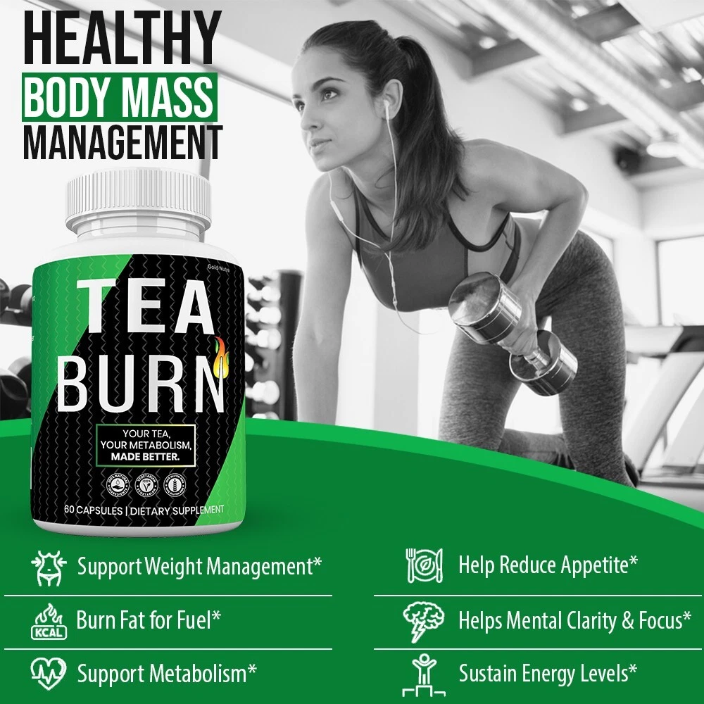 Tea Burn Powerful Advanced Formula, Maximum Strength for Men and Women. Tea Burn is manufactured in the United States. (2 Pack) 60 capsules per bottle. 2 month supply.