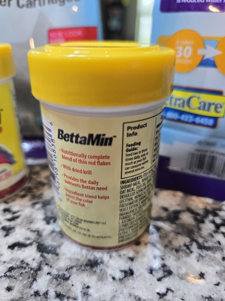 The product is a set of 2 Tetra BettaMin Flake Medley Betta Fish Flakes with an expiration date of 05/2027. These flakes are specifically designed for Betta fish and are suitable for regular feeding. Additionally, the set includes 3 Whisper Filter Cartridges for maintaining water quality in the aquarium. With the Tétra brand known for quality pet supplies, this product offers a reliable and long-lasting solution for caring for your Betta fish.