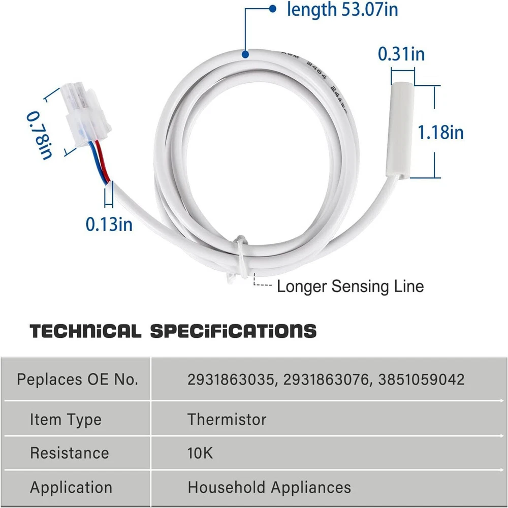 Replaces Part Numbers: Refrigerator thermostat for Dometic 3851210025 thermistor sensors. Replaces 2931863035, 2931863076, 3851059042. Applicable Model: Compatible with almost all Dometic RM,S,NDR & DM Series Models with two wire thermistor:RM1350 RM2351 RM2354 RM2410 RM2451 RM2454 RM2551 RM2554 RM2607 RM2611 RM2612 RM2620 RM2652 RM2663 RM2807 RM2811 RM2812 RM2820 RM2852 RM2862 RM3807 RM3862 RM3863 RM3962 etc.For S520 S530 S619 S620 S630 S819 S820 S830 S1521 S1621 S1631 S1821 S1831 etc. For NDR1062 NDR1292 NDR1492 etc. For DMC702 DMR702 DM2652 DM2672 Dm2682 DM2683 DM2852 DM2882 etc. Excellent Performance: Solve your refrigerator problems, the dometic 3851210025 refrigerator thermistor kit can sense temperature changes in the refrigerator and send a message to the control board Signals, which can easily solve your refrigerator temperature problems. You no longer have to worry about your fridge freezing all your food and not providing the right temperature. High Quality: This Thermistor is made from high-quality materials, with environmental protection epoxy resin coating and double-layer sealing, with better insulation sealing. Can be more accurately transmits a temperature change signal from -20°C to 105°C. Satisfaction Guarantee: We aims to provide the best service for our customer, if you're not 100% satisfied with our item, simply return it for a full refund in 60 days, no questions asked money back guarantee with 12 months’ warranty. Package Include: 2 x Thermistors