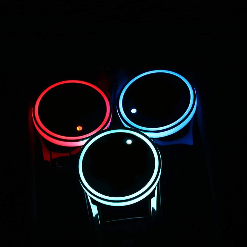 About this item TOP QUALITY MATERIALS: LED car coasters are made of Acrylic, they are dust-proof with waterproof surface that ensures holing cup safe, and the smooth surface is easy to clean for long time using. VIBRATION-SENSING: when luminescent cup pad senses vibration, it will automatically turn on in the dark, and lights will automatically turn off in 15 seconds without sensing vibration, it's smart and convenient. PACKAGE CONTNETS: you will get 2 pieces LED car coasters and 1 piece USB cable. It is convenient for connecting to the car's USB interface directly, and the nice performance makes LED cup holder lights can work long time (last about 8 hours) after fully charged. ADD THE COOL COLOR FOR YOUR CARS: Our LED cup holder light have 3 modes ( Colorful, breath and gradient ) and 7 colors light ( White, Red, Blue Green, Yellow, Purple and ice blue ). You can change the colors freely according your moods and will give you a cool driving experience. EASY TO USE: there is a button on the back of USB charging cup mat for you to control light mode and change lights color, a adorable gift to family, fiends, colleagues and most car owners.