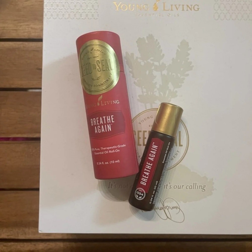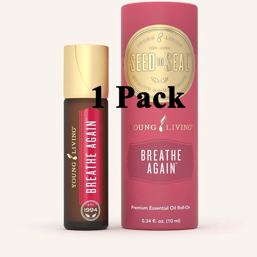 ** US STOCK - FAST & FREE SHIPPING ** 2 NEW & SEALED Young Living BREATHE AGAIN 10ml Essential Oil Roll-On FREESHIPP Breathe Again combines some of Young Living’s most refreshing essential oils—including four different types of Eucalyptus—for a powerful, rejuvenating essential oil. In addition to various types of Eucalyptus, Breathe Again includes Blue Cypress, which is steam distilled from the leaves and wood of the blue cypress, a tree indigenous to Australia. It also includes Copaiba, which comes from the resin of the Brazilian Copaifera reticulata tree. With these potent essential oils, Peppermint, Myrtle, and more, Breathe Again is a must-have any time you’re in need of a refreshing experience. Directions Apply generously to chest and neck as desired. Features & Benefits Has a soothing and comforting aroma Portable, easy-to-use roll-on design for quick application on the go Provides a cooling and soothing sensation Refreshing scent supports the feeling of normal, clear breathing* Blended with four powerful Eucalyptus oils Suggested Uses Inhale Breathe Again for a refreshing breathing experience. Apply it topically and inhale for a clean aroma in a stuffy environment. Apply it generously to your throat, neck, or chest as desired for a cooling and soothing sensation. Apply it for a refreshing aroma during seasonal changes. Shipping This item is IN STOCK from warehouse in USA and ready to ship within 24 hours. We strive to make the shipping process as easy as possible. Most of our items ship out within 24-48 hours and take 3-8 days for delivery. If you have any questions about our shipping policy or delivery times please don't hesitate to contact us. We DO NOT ship to the following: PO BOX & APO/FPO Addresses Hawaii, Alaska, Puerto Rico, & Virgin Islands. We ship to the continental 48 US States Only.
