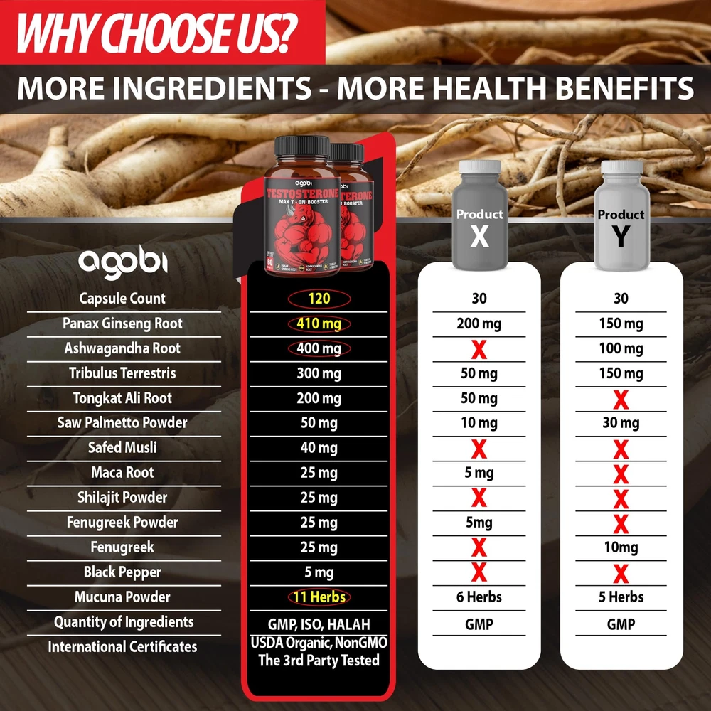 ✅ Superior Strength: capsules equivalent to 14000 mg per Serving Size of all ingredients. Specially, our Ginseng, Ashwagandha, Tribulus are 10:1 Concentrated, more than 5:1 from others. Support always "On" status. ✅ 11-in-1 Special Formula with Panax Ginseng Root, Ashwagandha Root, Tribulus Terrestris, Tongkat Ali Root, Saw Palmetto, Safed Musli, Maca Root, Shilajit, Fenugreek, Black Pepper, Mucuna Powder; Elevating well-being. ✅ 14000Mg Potency - Just 2 capsules daily; Convenient 2-month supply with 2 packs 60-pill bottle; Support strength, stamina, muscle mass, energy production, restful mood and immune system for men & women. ✅ Tested! All Supplements are made by cGMP, ISO, and FDA-registered manufacturer. Gluten-free, non-GMO, plant-based, keto-friendly, vegan. Quality assured by USA lab. ✅ Testos Support Bottle maintain a healthy balance by incorporating exercise, and herbal supplements into your lifestyle for a vibrant and fulfilling life. Choosing - Choosing to make a difference!