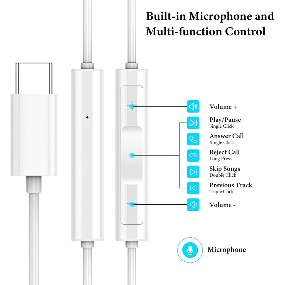 Product Photos Description 2X USB-C Wired Earphones for iPhone, Samsung – Type-C Headphones w/ Mic, Remote, Noise Cancelling ✅ Universal Compatibility | Hands-Free Calling | Fast Shipping 🎧 Product Features: 🔗 Universal USB-C Compatibility: Works with all devices featuring a USB-C port, including Samsung, iPhone, Google Pixel , iPad Pro , OnePlus , and other devices with USB-C Ports (no adapter required) 💪 Stronger Wire Design + Remote Control: Reinforced cable for added durability and long-term use. Inline remote supports Volume + / - , Play/Pause , Next/Previous Track , and Call Control —perfect for on-the-go convenience. 🎵 High-Quality Sound: Delivers clear, high-resolution audio with no buzzing or distortion. Just plug and play to enjoy crisp sound and deep bass from your favorite music or podcasts. 🧘 Comfortable & Secure Fit: Soft in-ear pads with 3 sizes of premium silicone ear tips (S/M/L) for a personalized, comfortable fit and excellent noise isolation—great for long-term wear during workouts, travel, or daily use. 🎤 Built-in Microphone for Hands-Free Calls: Take calls with crystal-clear voice quality. Ideal for driving, working, exercising, or multitasking. 🎚️ On-Ear Volume & Track Control: Easily manage music and calls without reaching for your device. Payment Policy Only paid items will be shipped. NY Sales Tax will apply to all sales for New York residents. We are not responsible for any customs duty incurred at foreign customs. We do not ship on weekend or public holidays. Return Policy All returns are accepted within 30 days after receiving the item We exchange/replace item if ONLY item is in same condition as when we shipped out. No exception. You should contact us prior to returning an item. Refund is given as Exchange or Money Back Buyer will pay the return shipping cost regardless any reasons. No exception. Unwanted product returns will be subject to a 15% restocking fee and merchandise must be in unused condition only. Shipping Policy Handling Time: Your orders will be processed and shipped within 24 hours (Excluding Weekends and National Holidays) Shipping Time: Domestic Shipping typically takes 3 to 5 business days via USPS First Class Shipping Address: We only ship to address that you provide during PayPal checkout. Buyer is responsible for wrong or undeliverable address. Please contact us immediately if you inputted the wrong address. We might be able to correct the address for you if the item hasn't been shipped, but this is not always guaranteed Cut-off Time: Normally, we will ship your order on the same day if the order was placed before 11 AM, however the exact cut-off time for same day shipping may vary Feedback We guarantee 100% customer satisfaction. If your shopping experience with us was anything less than FIVE STAR, please contact us before leaving any Negative or Neutral feedback For fast response, please contact us via eBay's messaging system (eBay Messenger) All messages will be answered within 24 hours (Excluding Weekends and National Holidays) Our business hours are Monday - Friday 10AM to 5PM EST Categories Apple Samsung LG ZTE Motorola HTC Alcatel Kyocera Google OnePlus Asus Nokia Phone Pouch Audio & Video Cables Screen Protectors Charger Accessories Tablet Accessories Combo deals Store Newsletter! Add my Shop to your Favorites and receive my email newsletters about new items and special promotions! Sign Up Now!