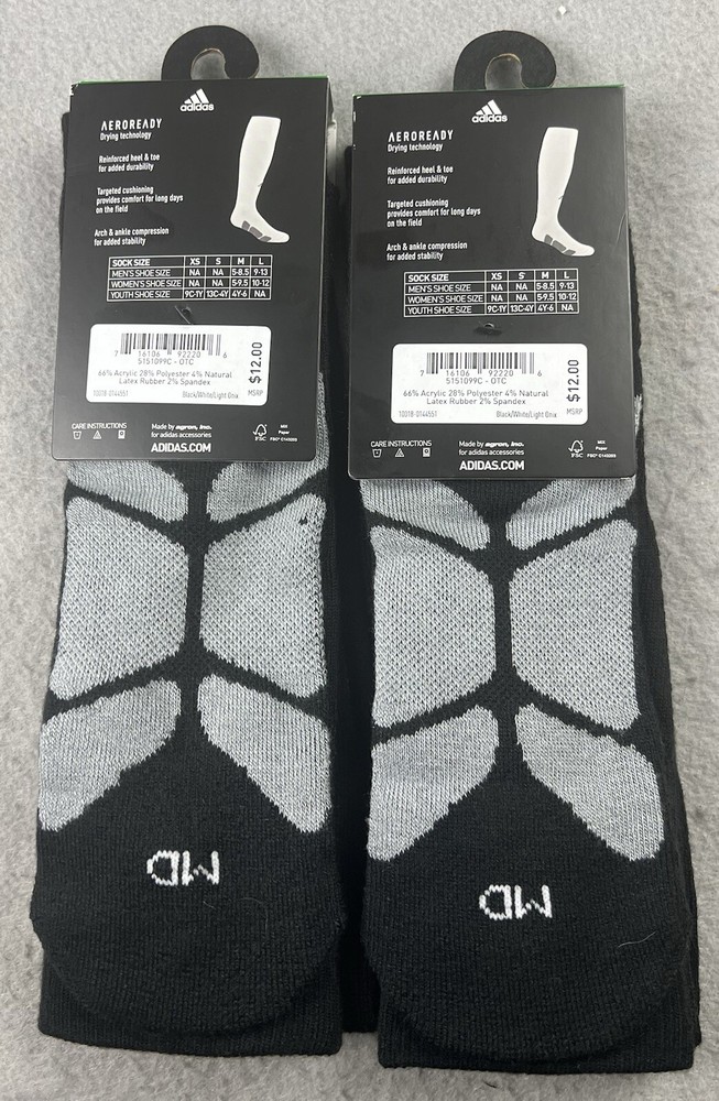2 Pairs Adidas Aeroready ICON Over-the-Calf Baseball Socks Black Size Medium