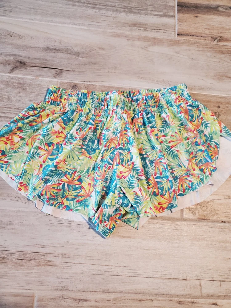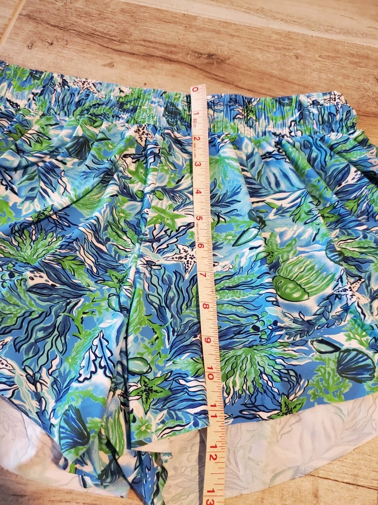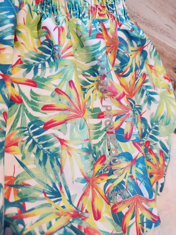 The product is a set of 2 pairs of Banana Boat Girls Large Floral Tropical Butterfly Shorts in blue, size 12-14. These shorts feature a fun and vibrant butterfly design, perfect for a casual summer or spring occasion. Made by the brand Banana Boat, they are machine washable and have a regular fit. The multicolored floral pattern adds a touch of tropical flair to the style, making them a bright and stylish choice for young girls looking to stand out in their summer wardrobe.