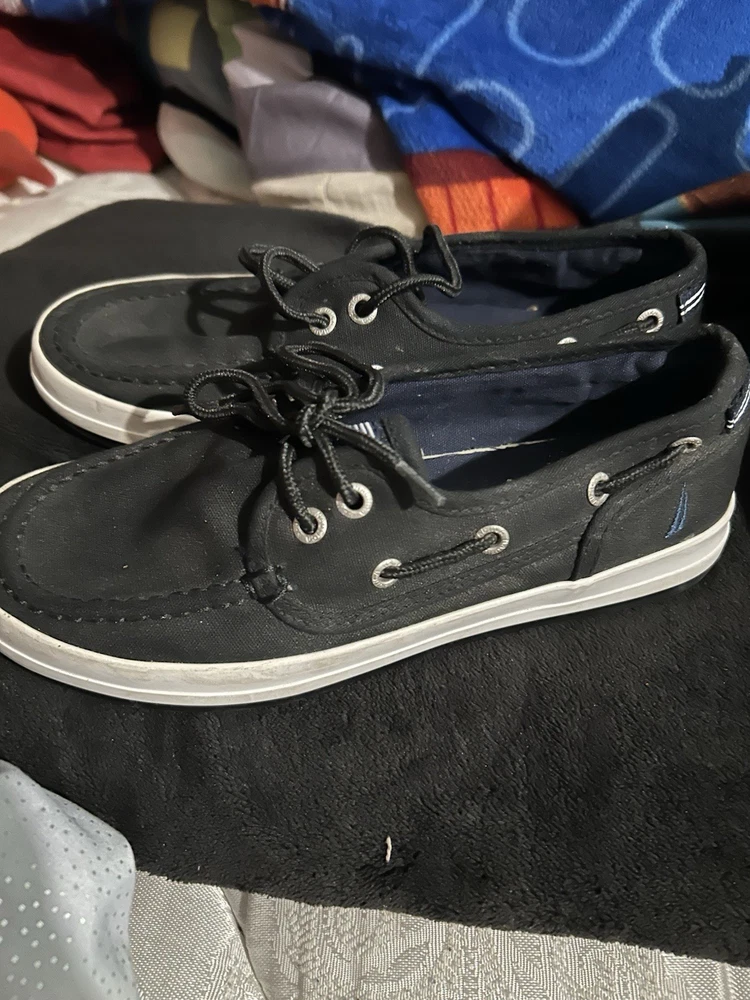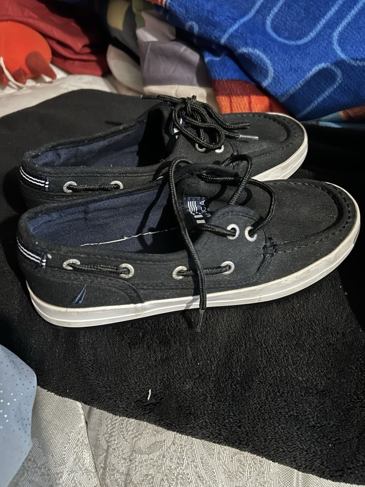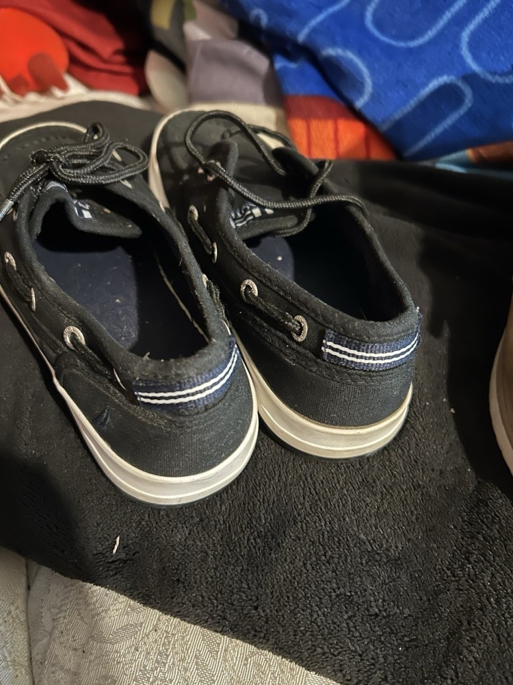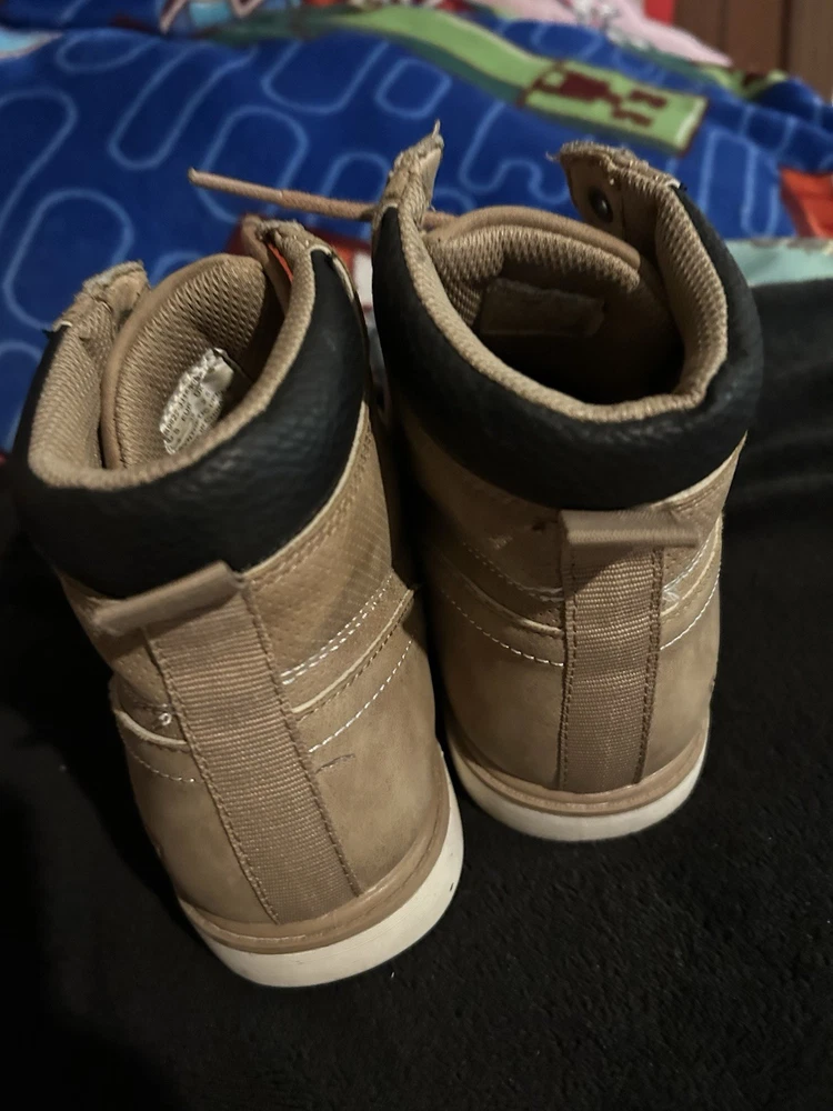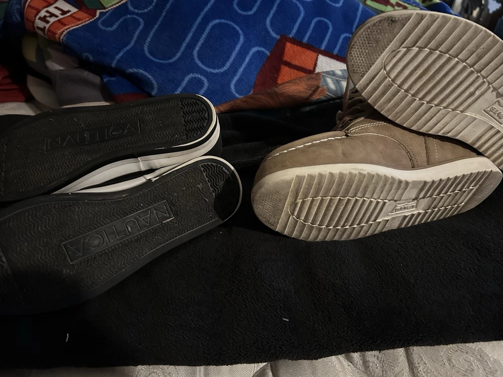 The product is a set of boys' shoes, specifically boots from the brands Levi and Nautica. The boots are in size 3 and are designed specifically for boys. These shoes are stylish and fashionable, perfect for young boys who want to stay trendy. The Levi boots offer a rugged and casual style, while the Nautica shoes are more sporty and versatile. This set would be great for a variety of casual outfits and occasions, making it a versatile addition to any boy's wardrobe. No returns no refunds