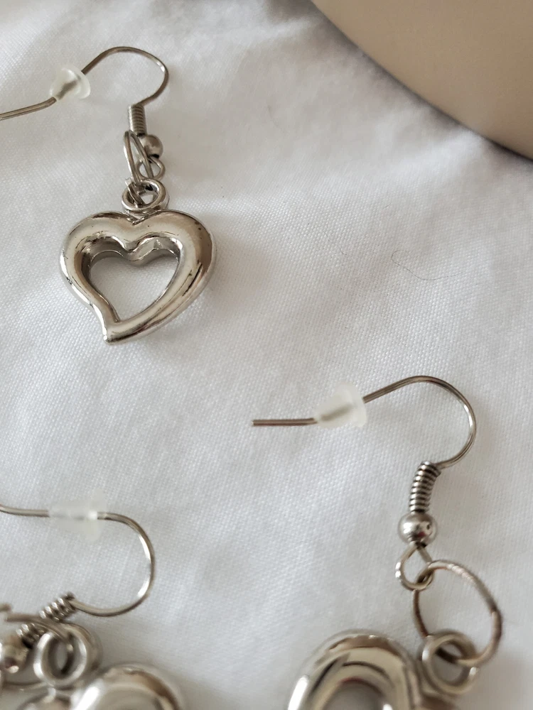 2 Pairs of Silver Heart Earrings