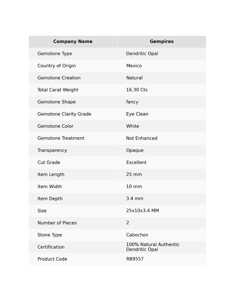Welcome To Gempires This handmade item consists of two pieces of fancy-shaped Dendritic Opal gemstones, each measuring 25mm in length and 10mm in width. The gemstones are opaque white in color with excellent cut grade and eye-clean clarity. They have been polished and are 100% natural authentic Dendritic Opal from Mexico. The gemstones are not enhanced and are suitable for wholesale purchase. The certification ensures the authenticity of the gemstones, making them a unique and valuable addition to any jewelry collection. 2 Pcs 16.30 Cts Natural Dendritic Opal Necklace Making Cabochon 25x10x3.4 MM Check My Other Dendritic Opal Listings : Click Here Note: For Custom / Bulk Order, Please contact on Ebay Message Service. QUALITY ASSURANCE:- The photo may not give you the actual size, please refer to the item description for size details. Our product Images are original. We dont use Photoshop for any editing. We always do our best to display an actual image of the gemstone which is to be delivered to our customers. We check all our items and ensure the best quality standards. The item weight may vary 5% (+/-) at maximum and size may vary .10 cents (+/-) as per the gemstone standard. Return Policy:- Any reason, if you are not satisfied with our product, you may return item within 14 days from the date of product delivered. The Item must be returned in its original condition. Return shipping will be paid by buyer. Shipping Policy: At Gempires, we offer two shipping options for our customers: Standard Shipping: 13-15 Days Express Shipping: 5-7 Days Standard Shipping: Our standard shipping option takes approximately 13-15 days for delivery. Please note that this is an estimated time frame and may vary depending on your location and any unforeseen circumstances. We strive to ensure that your order is processed and shipped as quickly as possible. Express Shipping: If you need your order delivered quickly, we offer an express shipping option that takes approximately 5-7 days for delivery. This option is available at an additional cost, which will be displayed during the checkout process. Please note that this time frame is an estimated delivery time and may vary depending on your location and any unforeseen circumstances. Handling Time All orders are processed and shipped within 1-2 business days after payment has been received. Once your order has been shipped, you will receive a tracking number via Ebay notifications, which you can use to track your package. Custom Duty Note Please note that we are not responsible for any customs or import duties that may be charged once the package reaches your country. These charges are the responsibility of the buyer and are not included in our shipping fees. We take great care in packaging our products to ensure that they arrive at your doorstep in pristine condition. However, if your package arrives damaged or you have any other concerns about your order, please don't hesitate to contact us. We will do our best to resolve any issues and ensure that you are satisfied with your purchase. Feedback Policy:- At Gempires, we value your feedback and strive to provide the best customer experience possible. We welcome your reviews and appreciate your time in sharing your thoughts about your purchase with us. If you are satisfied with your purchase and our service, we would love to hear about it. Your positive feedback can help other buyers make an informed decision about our products and services. If for any reason you are not completely satisfied with your purchase or our service, please reach out to us before leaving a negative review. We are committed to resolving any issues that may arise and ensuring your satisfaction. Thank you for choosing Gempires for your natural gemstone needs. Your feedback is valuable to us, and we look forward to providing you with exceptional service in the future. Best Regards Gempires