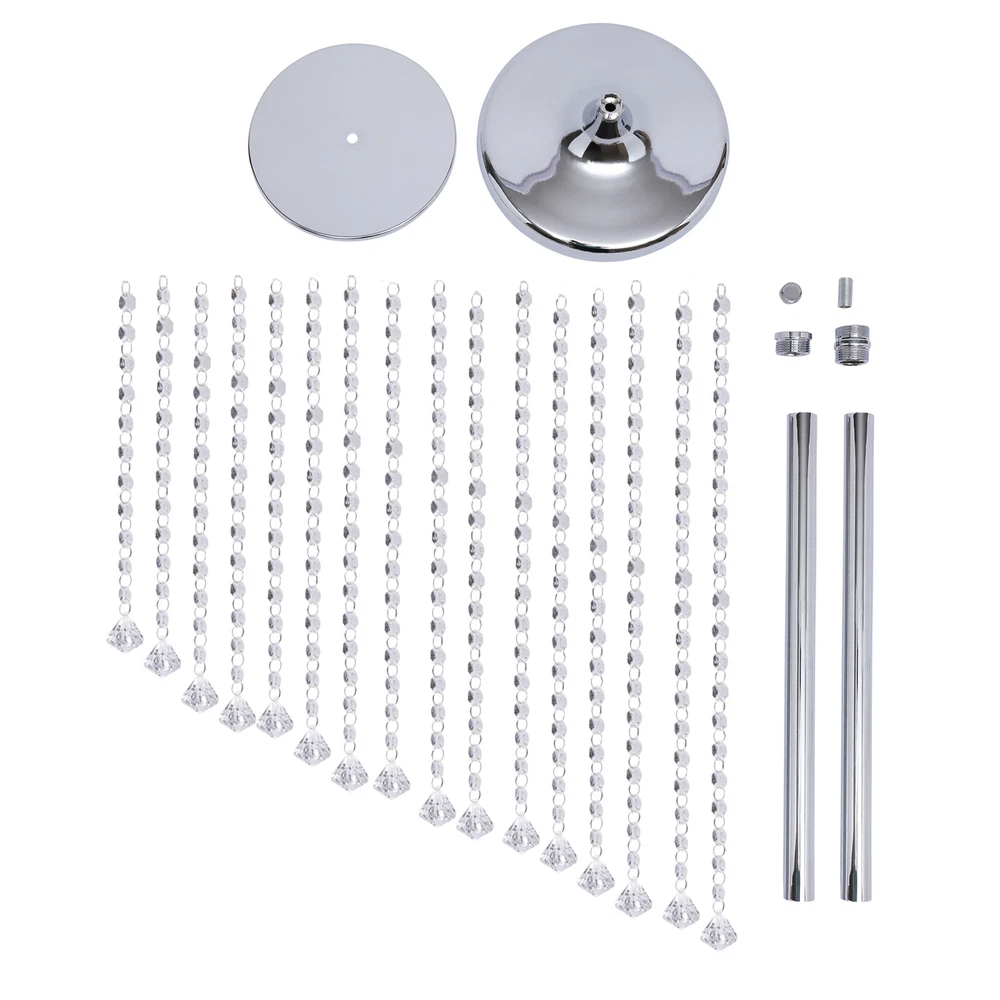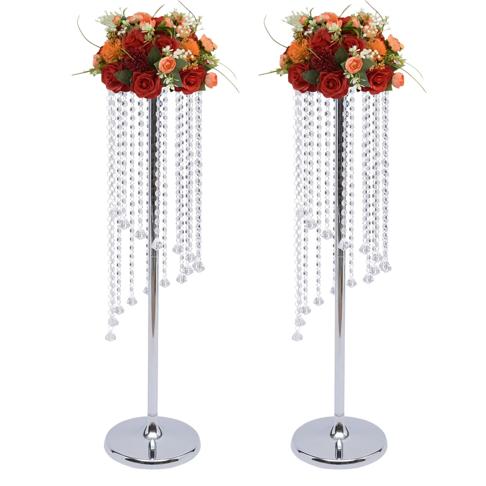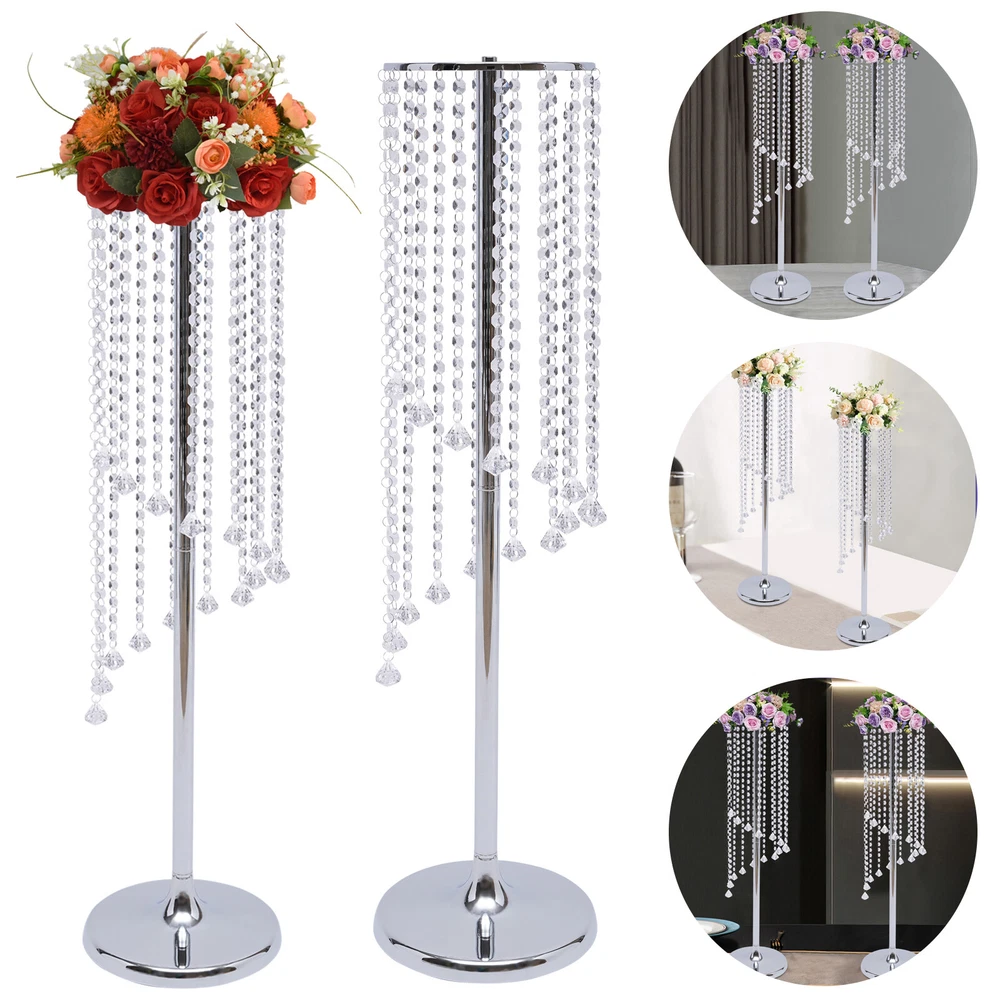 2 Pcs 35.4inch Tall Silver Flower Vases Wedding Centerpieces Crystal Vase Decor Wedding Centerpieces Gold Vases: 35.4in Tall Crystal Flower Vase Metal Flowers Stand for Party Tables Decorations - Elegant Bulk Weddings Decoration Table Chandelier Centerpiece Stands Description Brighten up dull wedding decorations, birthday centerpieces, party decorations, and dessert table decorations and impress your guests with your fabulous decorations - just use our alluring crystal flower stand. Each crystal pendant is available in a variety of lengths, adding extra sparkle to make your wedding, party, or home even more luxurious! Key Features Elegant and Luxurious Decoration: Our crystal flower stand has a golden elegant finish that is full of glamour and luxury. It has crystals that add extra sparkle to any festive occasion. Easy to Assemble and Store: The package includes the necessary screws for installation, which makes it easy to install. And it is also easy to disassemble and store after use without taking up too much space. Simple Design: Its simple structure and crystal design will neither look monotonous nor steal the limelight from flowers and other decorations. It is ideal for decorations anywhere. High Quality: Our crystal flower stand is made of high-quality iron material with an electroplated surface, so it has good weather resistance. It will not change its performance or shorten its service life due to the harsh environment. Easy to Clean: Its electroplated smooth surface makes it easier to clean. You only need to wipe it with a soft cloth to make it look new. Suitable Height: The 35.4inch height allows people to notice the flowers on it more easily. Whether it is placed at the entrance or as a decoration on both sides of the wedding hall, it can present a better view to the audience. Enjoy DIY Fun: You can use it with fresh seasonal flowers or artificial flowers, garlands and bouquets as you like, thus allowing you to enjoy DIY fun and create a unique scene. Two in a Package: The package comes with two crystal flower holders, which is just enough for symmetrical placement in your desired place. Therefore, you don't need to buy extra, which is very affordable and convenient. Details ① Large Base: It has a base diameter of 9.4inch which achieves greater stability with the help of geometric construction techniques. ② Different Lengths of Crystal Chains: It uses 16 different lengths of crystal chains, so it presents irregular ring lines, improving the design of its appearance. Application It is ideal for wedding aisle decorations, wedding receptions, event centerpieces, crystal centerpieces flower path leads, and glitter centerpieces. Specification -Material: Iron + Crystal -Color: Silver -Style: Modern -Use Form: Desktop, Floor-standing -Number of Pieces: 2 -Surface Treatment: Electroplating -Load-bearing Capacity(Each): About 10kg/22lbs -Package Size: 40*24*8cm/15.75*9.45*3.15in -Each Product Height: 90cm/35.4in -Each Top Plate Diameter: 20cm/7.87in -Each Base Diameter: 24cm/9.6in -Gross Weight: 2.8kg/6.17lbs -Net Weight: 2.5kg/5.51lbs Package Included 2*Flower Trays 2*Bases 4*Iron Robs 32*Crystal Chains All Accessories for Assembly Notes 1.Please note that decorative bouquets are not included and must be prepared by yourself. 2.Please allow the slight color difference caused by the shooting light and 1-3cm error due to manual measurement, and make sure you do not mind before you place the order. Payment Delivery details Terms of sales About us Contact us Payment We accept ebay payment 。 Fees such as import duties, taxes are not included in the item price or shipping costs. These charges are the buyer's responsibility. Delivery details Shipping: 2-9 working days to: USA Terms of sales We maintain high standards of excellence and strive for hundred percent customer satisfaction. Feedback is very important to us. We hope that you contact us immediately before you give neutral or negative feedback, so that we can address your concerns. It is impossible to address issues if we do not know about them! About us Your satis faction is our ultimate goal. We work hard to earn your trust and future business. Our certified technicians have tested each item before shipping. The unit comes with 1 year limited warranty on all manufacturing defects. a) If you receive a defective item, you may return it or ask for a discount. Please contact us within 14 days after you receive the package. b) What you returned must be intact and in its original packaging as re? u. Customer is responsible for shipping costs of the returned item. c) We will cover the cost of shipping back t with the shipping rate indicated in the registration page. We will send you a new unit or refund the full payment you paid. Thank you. Contact us Business Hour Business Hour: Monday To Friday: 8:30 AM to 5:00 PM (Beijing China time) Due to time zones, our reply to your questions may not be immediately. But within above working time, we will reply your email within 24 hours. If it's non-workdays, please kindly be patient and wait till Monday. Please contact us with ebay message. Please feel free to contact us if you have any questions. Monday To Friday: 8:30 AM to 5:00 PM (Beijing China time) Due to time zones, our reply to your questions may not be immediately. But within above working time, we will reply your email within 24 hours. If it's non-workdays, please kindly be patient and wait till Monday. Please contact us with ebay message. Please feel free to contact us if you have any questions. On Dec 17, 2024 at 22:26:16 PST, seller added the following information: