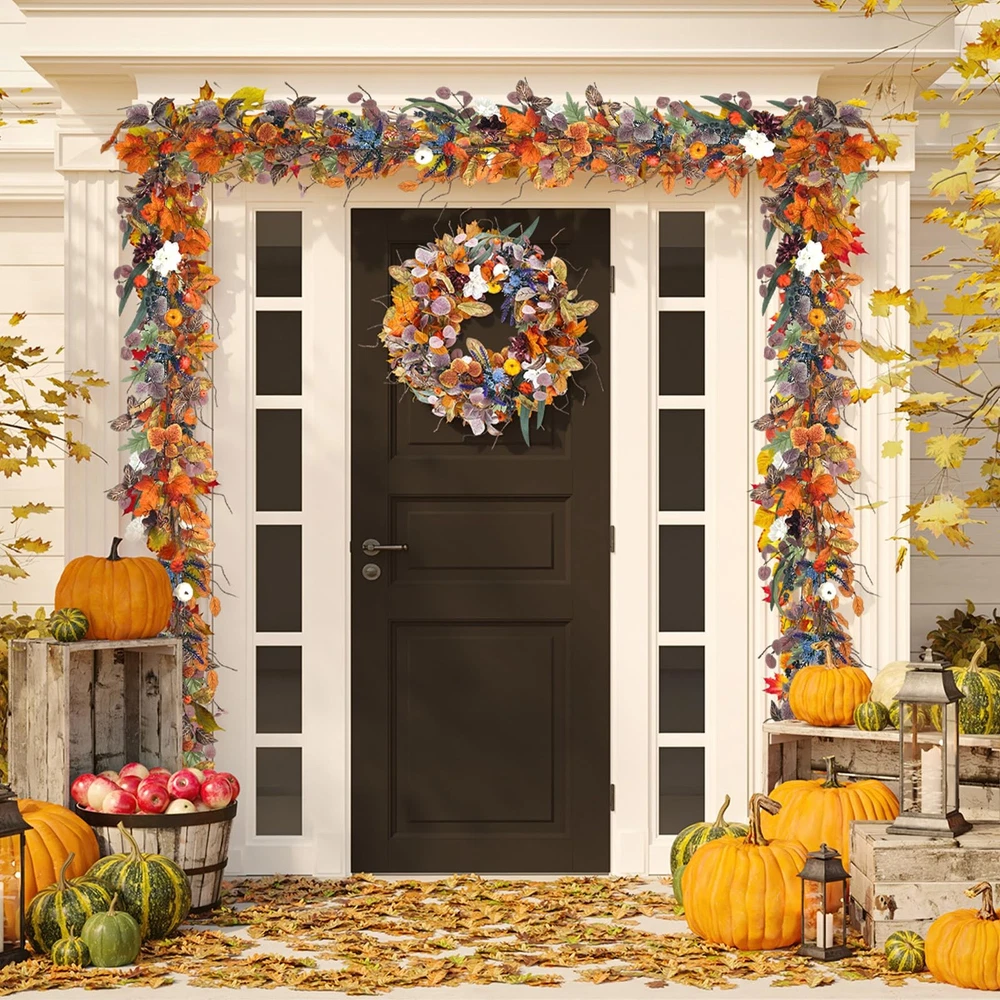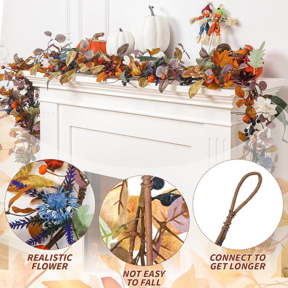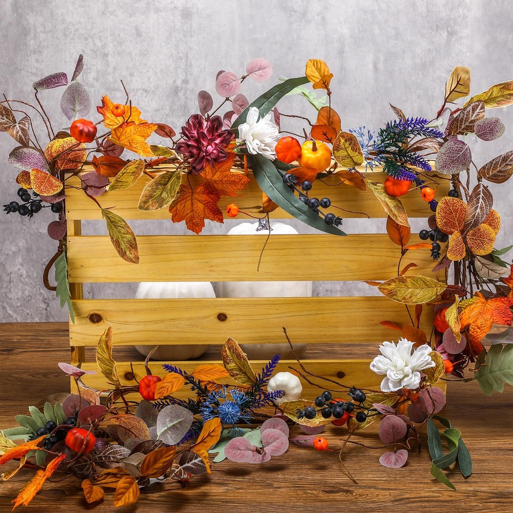 Features: The flower vines for decoration are lightweight and portable, convenient to carry and store, can be easily put in your closet when not in use, not taking up much space. You can present the flower garland for backdrop as ideal gifts to your families, friends, colleagues or neighbors for decorating during holidays, celebrations or ceremonies, making your relationship closer. Specifications: Material: plastic Color: mainly white, yellow, orange Size: about 6 ft/ 1.8 m long Package includes: 2 x Floral garlands Notes: Manual measurement, please allow slight errors on size. The color may exist a slight difference due to different screen displays. Realistic Pumpkin Eucalyptus Wreath: this set contains 2 realistic fall harvest pumpkin and eucalyptus wreaths, suitable outdoor fall decorations, consisting of pumpkins, colorful eucalyptus leaves, plant vines and dahlias; Eye-catching fall colors and unique design make your decoration stand out; Provides double the beauty and vitality, more suitable for the cheerful atmosphere of autumn harvest Autumn Thanksgiving Garland: this artificial fall wreath is decorated with yellow and orange pumpkins, autumn leaves; It is full of vitality, life and autumn atmosphere, making your home more autumn atmosphere, and is a ideal Thanksgiving decoration Bend and Shape As You Please: our fall flowers decorations have a flexible size to suitably fit your decorating ideas; Whether straight, curved, or spiraled, bending our 6 ft/ 1.8 m long garlands to suit your decor desire, will not distort or break them, allowing for unlimited creativity; In addition, please remember to unfold them after receiving, you can also splice 2 garlands together to decorate a larger space Versatility at Your Fingertips: from homes to offices, indoor parties to garden, our garlands for decor with flowers lift the ambiance most place applied, such as stairs, front doors, fireplaces, walls, farmhouses, indoor and outdoor decor; Their versatile nature magnifies the creative options of their applications, making the most of your decoration process; It's an ideal addition to your fall and Thanksgiving Day home decor Clean with Convenience: constructed with reliable plastic, our flower vines for decoration are easy to clean and storage; A simple swipe with a damp cloth can restore their freshness, making them reusable for different occasions without loss of their original aesthetic