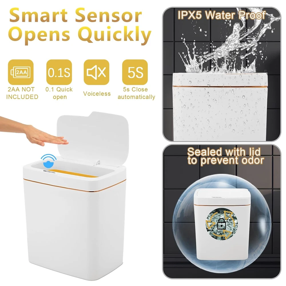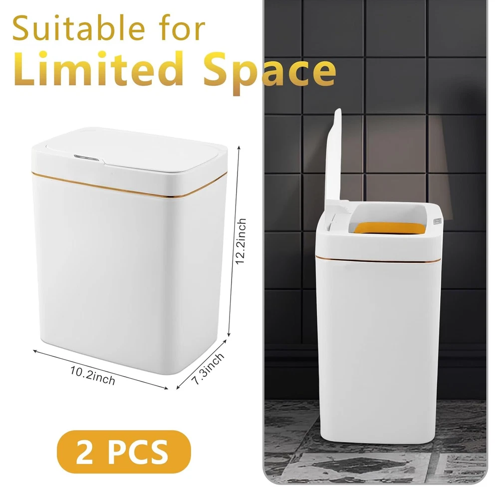 Store New Arrivals Add to Favorite View Feedback Contact 2 Pcs Bathroom Trash Cans with Lids 4 Gallon Automatic Trash Can Small Touchless Motion Sensor Trash Can Slim Garbage Can with Lid for Bedroom Bathroom Office Living Room Kitchen, White Gold Description Item model number -Trash Cans-hjidyhe Room Type Bedroom\living room Capacity 15 Liters Color white, gold Product Dimensions 11.81"L x 12"W x 7.09"H Material Plastic Country of Origin China Shape Rectangular Opening Mechanism allows the lid to open Recommended Uses For Product Indoor Special Feature Quiet Close Package Includes: you will receive 2 pieces of automatic trash can in white color with gold lines embellishment, enough quantity and classic color to meet your needs and replacements, and you can also share one with your friends or family members Proper Size: our motion sensor trash can measures approx. 13.39 x 10.24 x 7.28 inches, with a capacity of 4 gallons, suitable for relatively narrow spaces; Large opening design allows you to use more comfortable, and avoid garbage coming out of the trash can Quiet and Safe: the smart trash can is designed with soft close technology, which allows the lid to open and close silently and smoothly, reducing unwanted noise and avoiding disturbing your family, and the lid can prevent the odor from spreading out, and keep the air in the environment clear at all times Smart Design: the bathroom trash can adopts automatic sensing technology, a blue light comes on when the lid is opened; When your hand leaves the sensing area, the blue light starts flashing for 5 seconds, counting down to the nice time to close automatically, such a smart sensor design can easily throw garbage without bending over, bringing much convenience to you; you need to prepare to 2 AA batteries by yourselves Wide Range of Application: the touchless motion sensor garbage can is practical and useful, which can be widely applied for living room, kitchen, bathroom, bedroom, office, dormitory room and other small places Features: Nice gifts: These touchless garbage cans are suitable for sending to your friends, colleagues, relatives, neighbors, family members and others you care and love, they will be happy to receive these gifts. Reliable material: The 4 gallon garbage can with lid is made of plastic material, reliable and reusable, sturdy and waterproof, not easy to break, which can serve you for a long time, and you can use it with confidence Specifications: Material: plastic Color: white, gold Size: approx. 13.39 x 10.24 x 7.28 inches Package includes: 2 x Automatic trash can Notes: Manual measurement, please allow slight errors on size. The color may exist a slight difference due to different screen displays. ABOUT US We offer the best prices around on high quality products. Our E-store includes media such as books, movies, music and games while offering electronics, toys, sporting apparel, clothing, tools, general home, garden items and more. SHIPPING We are always working hard to ensure your package arrives as soon as possible. Please understand that some factors like weather, high postal traffic, and the performance of shipping companies are outside of our control. We offer free shipping to the lower 48 states and ship within 2 business days of payment, usually sooner. We do not accept P.O. Boxes. Please provide a physical address. For shipping outside of the continental USA, we only use eBay's Global Shipping Program.The item is shipped to KY and then sent to the rest of the world. International customers are responsible for all duties and taxes. Continue to check out in order to calculate costs for shipping the item to your country. Messages regarding eBay's Global Shipping Program MUST be directed at eBay EXCLUSIVELY. RETURNS We offer a 30-Day Return Policy on items which you are not completely satisfied with. You have the option for a full-refund or an exchange of the item. No returns are available on items shipped outside of the USA. PAYMENT We accept PayPal. CONTACT US This page content is yet to come Please ad us to your favorite seller and visit again later Thank You CUSTOMER SATISFACTION We try our very best to make sure every customer is completely satisfied. If there's a problem, message us! We're happy to help. WE ACCEPT Copyright © 2021 AutoDS. | All Rights Reserved