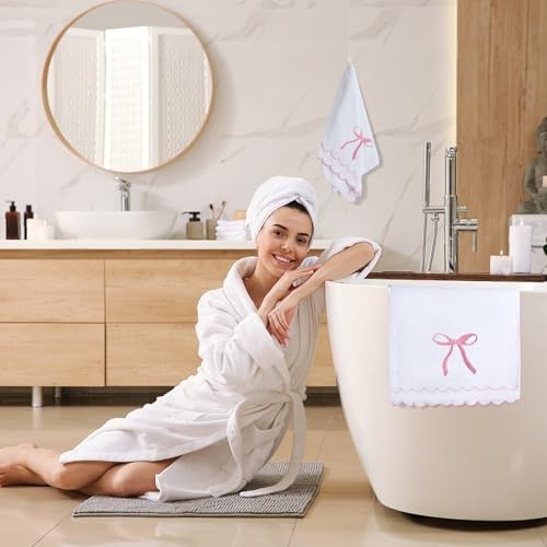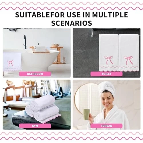 Return Policy Fast Delivery Trusted seller 2 Pcs Coquette Bow 100% Cotton Hand Towels for Bathroom Scalloped Hand Towels 16 * 27 Inch Embroidered Decorative 500 GSM Soft Absorbent Bath Towel for Spa Yoga Hotel Sport (Pink) Product Description Value Set: 2 packs hand towels are contained in the set, with delicate designs that makes them beautiful and practical accessories for cleaning and drying Cute Design:Our hand towels are embroidered with pink bow, look very exquisite and cute; The feature of scalloped and embroidered edges distinguishes it with a fashionable charm; Please note: the hand-cut edges may display a bit of fringe, but it doesn't affect normal usage Ideal Size: Each hand towel is 15.75 x 27.56 Inch, proper size for drying, cleaning, cooking and other uses High quality materials: Made of premium cotton, machine washable and can be dried. Soft and reusable, these towels will not scratch your hands, face, body, etc Multipurpose Usages: designed for your convenience, these hand towels set are effortlessly easy to wash; The towels are surface smooth, ensuring they retain their softness even after countless machine washes; Ideal for a variety of settings, including spa, poolside, bathroom, Beach, salon, college dorm room or the gym; A must-have addition to your travel or home, these towels help you maintain your personal hygiene Shipping Returns Payment Shipping Shipping is FREE to all addresses other than APO/PO boxes in the lower 48 states. All our stock ships from US-based warehouses. Shipped via USPS or UPS (depending on location and package weight) Unless stated otherwise, all orders will ship within 24-72 hours of your payment being processed. Check our feedback to see the great reviews of FAST shipping we offer. Returns Seller does not accept returns Payment We currently accept payment via eBay managed payments only. Once payment is cleared, we will dispatch your shipment within 1-3 business days. Please refer to the "Shipping" tab for more information regarding shipping speed to your destination.