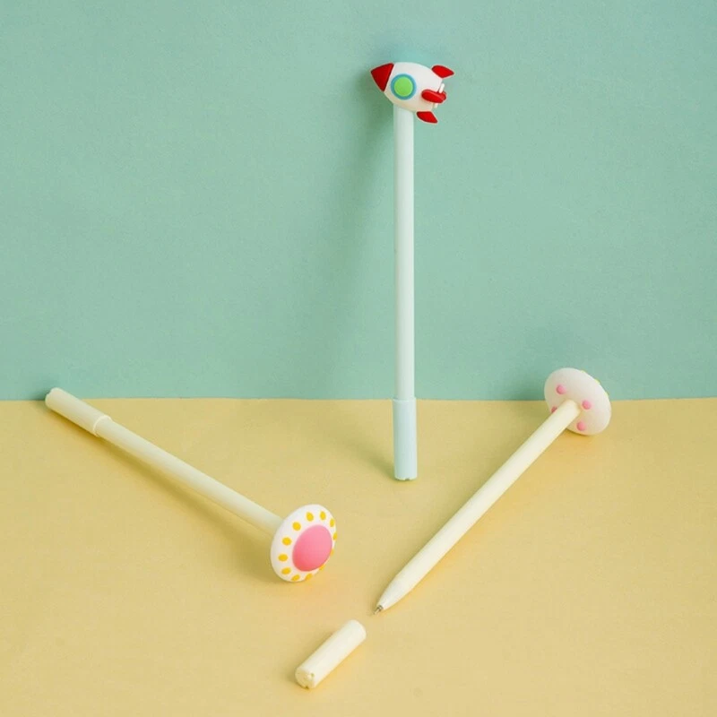 2 Pcs Gel Pen Refillable Gel Pen Black Pen for Student Writing Features: and high CARTOON GEL PEN. Lovely cartoon gel pens, 0.5mm fine nibs, black gel pen and blue gel pen 2 optionals. Length 6.89'' (17.5cm), proper size to carry and use. Refillable and durable. for writing, note taking ECOMONICAL CHOICE. Dries very quickly. No Fading, smudging or bleed-through. for Ideal for children, teachers, students, engineers, doctors, lawyers, designers and other mental workers. NOTE: Small parts not for children under 3 years old. LOVELY CARTOON cartoon and small ufo unqiue and lovely. Funny wiriting gel pen, relieve boredom, relax mood and ease tension. Universal 0.5mm refills, convenient to replace. MULTIFUNCTIONAL. Novelty Writing Pen, for writing, drawing, sketching, signaturing, Children Birthday Halloween/Christmas Party Supplies. Class Rewards. Novelty Decompression Activities giveawaya and more. NO FADED&LONG LASTING. Comfortable grip, long-lasting, quick-drying, smooth writing, no smearing & no fading. Each packege comes with 2 pieces novelty gel pens. Specifications: PVC+ABS Color: Black; Blue Pen Tip Size: 0.5mm Pen Length: Approx. 17.5cm/6.89in Color: Light Blue; Quantity: 2 Pieces Weight: Approx. 28g Package Includes: 2 Piece Novelty Gel Pen note: 1.Please allow 0-1cm error due to manual measurement. pls make sure you do not mind before you bid. 2.Due to the difference between different monitors, the picture may not reflect the actual color of the item. Thank you!