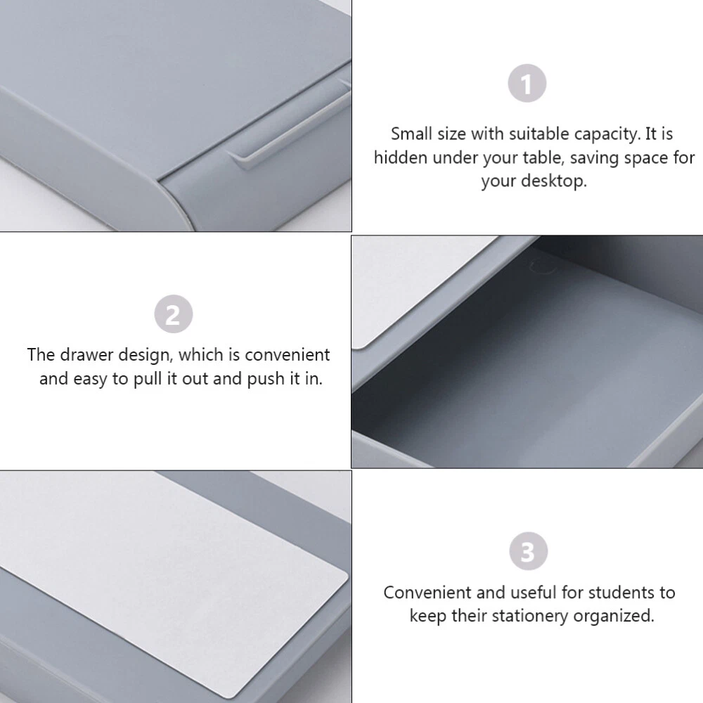 Related Hot Sale Badge Lanyard Card Holder Lanyards Pen Holders Cards US $7.79 4 Pcs Stretchable Wigs Cap Mesh Caps All Kinds of Heads Net US $11.28 set set Compensated Ebony Random Color US $22.25 4Pcs bell stick Percussion Musical Toy hand castanets Castanets Hand US $21.88 2PCS ice cream spoon dinner spoon salad spoons sugar spoons Curved Honey Spoon US $16.59 wire brush for eater Grout Scrubber Garden Brush Brush Wacker Weeding Brush Moss US $32.68 | Baby | | Books & Magazines | | Business & Industrial | | Cameras & Photo | | Clothing, Shoes & Accessories | | Collectibles | | Computers/Tablets & Networking | | Crafts | | Home & Garden | | Jewelry & Watches | | Cell Phones & Accessories | | Consumer Electronics | | Sporting Goods | | Toys & Hobbies | | Video Games & Consoles | | Health & Beauty | Product Description Collecting listings has surprises Description . Creative pencil box, made of ABS material. It can stick under the table for more convenient use. You can also use it to storage other items like keys, jewelries and others more. It is a good gift for your partner, family, friend and colleague Features - Simple and practical design, a nice-looking decoration for any table. - Convenient and useful for students to keep their stationery organized. - The drawer design, which is convenient and easy to pull it out and push it in. - Made of premium material, durable for long lasting use. - Small size with suitable capacity. It is hidden under your table, saving space for your desktop. - Color: Grey. - Material: ABS. - Size: Approx. 22X13.5X3.5cm/ 8.6x5.3x1.3inch. Package includes 2 x under desk drawer type boxes Contact US 1.If you have some inquires or problems, Please feel free to contact us. 2.We will reply your email within 1 business day (except weekend). 3.When delivery is delayed or items are damaged during delivery, please email us first before you leave feedback. Thank you. People Who Viewed This Item Also Viewed bigelow tea stainless steel coffee jar Tea Cans Tea Tin Tea Storage Home US $9.91 Decorative Vintage Small Tinplate Boxes Metal Storage Box Empty Boxes US $12.63 Bamboo Jewelry Organizer Case Storage Boxes with Lids Souvenir Glasses US $12.47 Specimen Display Box Home Table Decor Retro Wooden Storage Terrarium Vintage US $19.58 2Pcs Towel Hanger Curtain Tieback Hooks Crystal Curtain Hook Curtain Holders US $11.78 3 Pcs Pink Decor Wall Mount Key Holder Leaf Shape Hook Gold Porch US $9.19 12 PCS Bathroom Towel Hooks Suction Utility Heavy Duty Coat Hangers Cup US $7.28 2 Pcs Pegboard Shelf Hooks Wall Organizer Screwdriver Holder US $12.43 100 Pcs heavy duty screw hooks Screw in Hooks for Hanging Wall Hooks Heavy Duty US $9.13 1pc Miniature Dollhouse Ornament Doll Display Case Model Display Box Acrylic US $9.47 number pocket chart classroom classroom chair pockets for classrooms Hanging US $15.28 6 Pcs Candy Bag Cookie Container Storage Box Gift Boxes Hollow US $10.59 Home Specimen Case Shadowbox Multi-functional Display Portable Vintage US $26.68 20 Pcs Transparent Storage Box Small Plastic Bins with Lids Container US $11.59 Clothes Storage Dustproof Quilts Container Folding Zip up Sweater Organizer US $11.45 Test Tube Rack Polypropylene Centrifuge Pipe Shelves Metal Stand US $9.69 Cables Storage Box for Living Room Wire Management Power Board US $21.88 Rustic Home Decor Wooden Suitcase Vintage Ornament Packing Box US $71.15 Key Holder Home Storage Basket Nautical Wall Desktop Cabinet Locker Rural US $31.89 4 Pcs Mini Hand Basket Picnic for Kids Retro Candy Child Souvenir Chocolate US $7.58 8 Pcs Waterproof Hooks Wall for Hanging Seamless Pegboard up US $5.28 Fruit Vegetable Storage Holder Baskets for Kids Bath Hamper Take US $15.99 50 Pcs Shoe Bag Eva Scrub Travel Clear Packing Bags Organizer Wrapping US $17.38 10pcs Multiuse Baby Doll Clothes Hangers Doll Hangers US $7.46 On Mar 3, 2025 at 04:50:59 PST, seller added the following information: