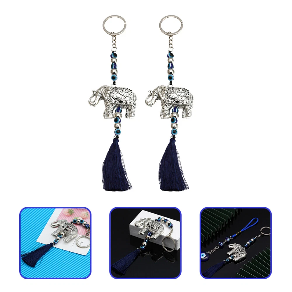 2 Pcs Key Chain Elephant Keychain Feng Shui Charms Car Pendant