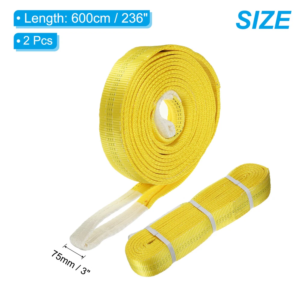 Document These polyester round slings are designed for lifting and rigging applications in industrial, construction, and commercial settings.SpecificationColor: YellowMaterial: PolyesterLength: 19ft (100cm)Width: 1.77" (75mm)Vertical Capacity: 22046 lbs.Packing List: 2 Pcs Polyester Flat Lifting BeltsAdvantageConstructed from high-tenacity polyester webbing for strength, which is low stretch and flexible to support the load shape firmly.InstructionLightweight and flexible for easy maneuvering and handling. Abrasion-resistant and weather-resistant for use in environments.NotePlease check the size and vertical capacity before choosing our products so that you can get suitable results for use. 2 Pcs Lifting Slings Straps Polyester 19ft Flat Lifting Belts(6613lbs) Yellow These polyester round slings are designed for lifting and rigging applications in industrial, construction, and commercial settings. Specification Color: Yellow Material: Polyester Length: 19ft (100cm) Width: 1.77" (75mm) Vertical Capacity: 22046 lbs. Packing List: 2 Pcs Polyester Flat Lifting Belts Advantage Constructed from high-tenacity polyester webbing for strength, which is low stretch and flexible to support the load shape firmly. Instruction Lightweight and flexible for easy maneuvering and handling. Abrasion-resistant and weather-resistant for use in environments. Note Please check the size and vertical capacity before choosing our products so that you can get suitable results for use. Hot Item Payment 1.We accept eBay payment . 2.Payment must be received within 7 business days of auction closing. Shipping 1.We ship to your eBay or Paypal address. Please make sure your eBay and Paypal address is correct before you pay. 2.Items will be shipped within 1-3 business day when we received payment. 3.Delivery time depends on destination and other factors. Description Policy 2 Pcs Lifting Slings Straps Polyester 19ft Flat Lifting Belts(6613lbs) Yellow These polyester round slings are designed for lifting and rigging applications in industrial, construction, and commercial settings. Specification Color: Yellow Material: Polyester Length: 19ft (100cm) Width: 1.77" (75mm) Vertical Capacity: 22046 lbs. Packing List: 2 Pcs Polyester Flat Lifting Belts Advantage Constructed from high-tenacity polyester webbing for strength, which is low stretch and flexible to support the load shape firmly. Instruction Lightweight and flexible for easy maneuvering and handling. Abrasion-resistant and weather-resistant for use in environments. Note Please check the size and vertical capacity before choosing our products so that you can get suitable results for use. Hot Item Payment 1.We accept eBay payment . 2.Payment must be received within 7 business days of auction closing. Shipping 1.We ship to your eBay or Paypal address. Please make sure your eBay and Paypal address is correct before you pay. 2.Items will be shipped within 1-3 business day when we received payment. 3.Delivery time depends on destination and other factors.
