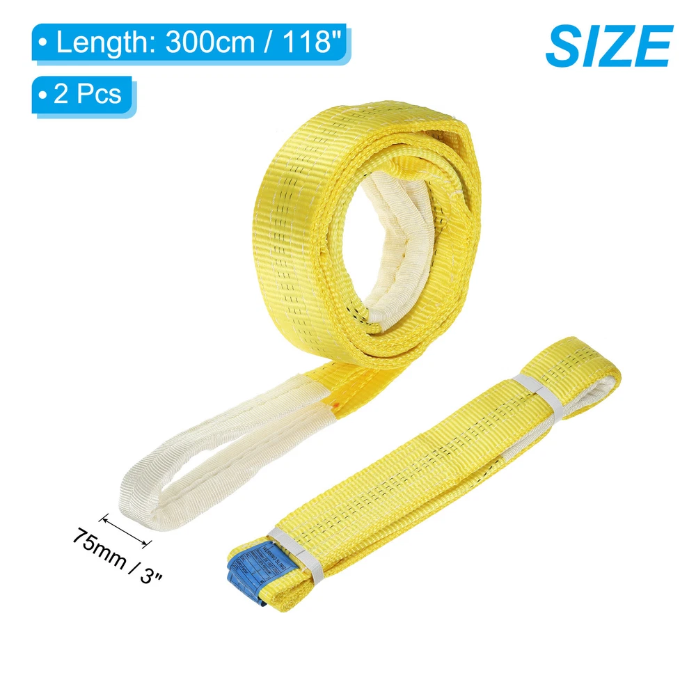 2 Pcs Lifting Slings Straps Polyester 9ft Flat Lifting Belts(6613lbs) Yellow