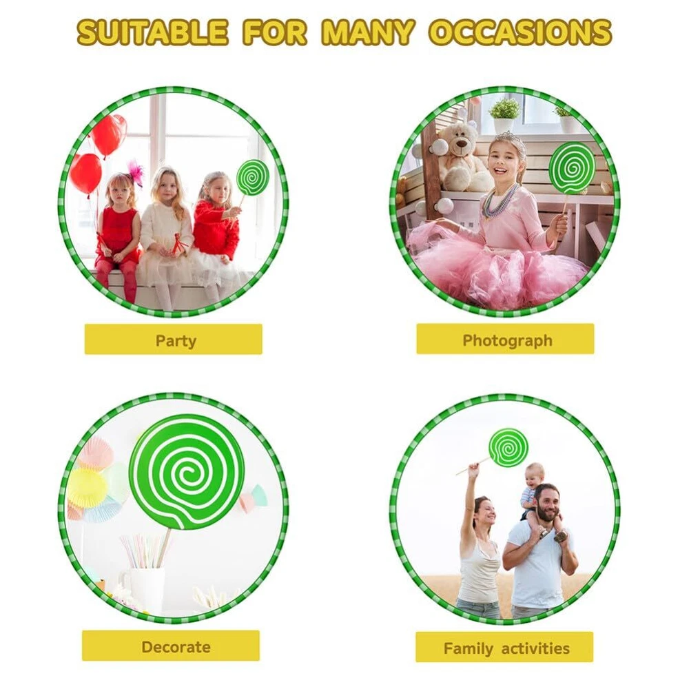 Description Simulation Lollipops Design Decorations Are Made of Premium Resin and Wood Material, Practical and for Using. The Realistic Appearance Makes It Look Lovely and Delicate, Which Can Decorate Your Photo Taking. Bring More Fun and for Your Photography. Features -Material:Resin, Wood/ - Size: 35.00X14.00X1.00cm; 13.76X5.50X0.39in/ - These Lollipops Decors Are Manufactured with , Not Easy to Fade or Deform. - Enjoy The Process of DIY with This Beautifully Designed Lollipops and Their Excellent Workmanship. - The Party Candy Decorations Are a Perfect Photo Prop, You Can Use It to Take Some Unforgettable Photos. - Features The Bright Color and Unique Appearance Design, Which Is Interesting and Novel. - You Can Use These Lollipops Ornament to Imagination and Creativity to Create Your Favorite Crafts. Package Including 2 X Lollipop Models/ Made of material for long time and durable use; You can use these lollipops ornament to imagination and creativity to create your favorite crafts These Lollipops Decors are manufactured with premium material, not easy to fade or deform; Do not contain any food ingredients, they wont attract , , . it can be used for a long time without distortion Enjoy the process of DIY with this beautifully designed lollipops and their excellent workmanship; A perfect photo prop, you can use it to take some unforgettable photos. Fake lollipops with real and inviting looking The party candy decorations are a perfect photo prop, you can use it to take some unforgettable photos; Features the bright color and unique appearance design, which is interesting and novel Suitable for school crafts lessons or parents- campaign. home,garden or cabinets decor, decoration,and used for DIY decorate material