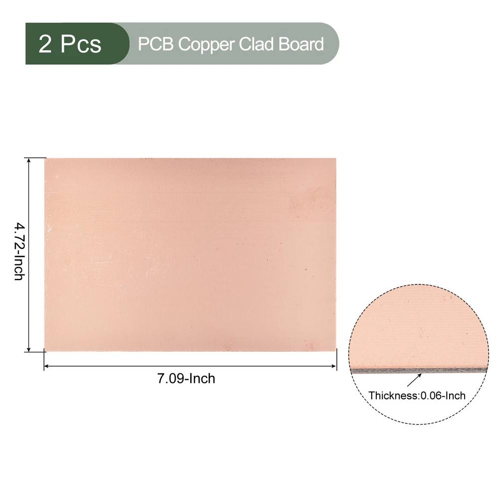 Document MULTIPURPOSE - Our blank circuit boards are great for your various electronic hobbies, such as etching, making models, testing, circuit projects, etc.WHAT YOU GET - The package comes with 2 Pcs copper clad board that measures 180mmx120mmx1.5mm(L*W*H).RELIABLE MATERIAL - The PCB board is made of FR4 glass fiber, copper-plated surface, durable and stable, with good adhesion of the copper to the fiberglass (no peeling or chipping).SPECIAL DESIGNED - The blank PCB is specially designed for making your own PCB circuit boards or making signs for your business.KINDLY NOTE - The boards may come with surface marks or scratches but don't affect performance. 2 Pcs PCB Copper Clad Board, Single-Sided Circuit Boards (180mmx120mmx1.5mm) MULTIPURPOSE - Our blank circuit boards are great for your various electronic hobbies, such as etching, making models, testing, circuit projects, etc. WHAT YOU GET - The package comes with 2 Pcs copper clad board that measures 180mmx120mmx1.5mm(L*W*H). RELIABLE MATERIAL - The PCB board is made of FR4 glass fiber, copper-plated surface, durable and stable, with good adhesion of the copper to the fiberglass (no peeling or chipping). SPECIAL DESIGNED - The blank PCB is specially designed for making your own PCB circuit boards or making signs for your business. KINDLY NOTE - The boards may come with surface marks or scratches but don't affect performance. Hot Item Payment 1.We accept eBay payment . 2.Payment must be received within 7 business days of auction closing. Shipping 1.We ship to your eBay or Paypal address. Please make sure your eBay and Paypal address is correct before you pay. 2.Items will be shipped within 1-3 business day when we received payment. 3.Delivery time depends on destination and other factors. Description Policy 2 Pcs PCB Copper Clad Board, Single-Sided Circuit Boards (180mmx120mmx1.5mm) MULTIPURPOSE - Our blank circuit boards are great for your various electronic hobbies, such as etching, making models, testing, circuit projects, etc. WHAT YOU GET - The package comes with 2 Pcs copper clad board that measures 180mmx120mmx1.5mm(L*W*H). RELIABLE MATERIAL - The PCB board is made of FR4 glass fiber, copper-plated surface, durable and stable, with good adhesion of the copper to the fiberglass (no peeling or chipping). SPECIAL DESIGNED - The blank PCB is specially designed for making your own PCB circuit boards or making signs for your business. KINDLY NOTE - The boards may come with surface marks or scratches but don't affect performance. Hot Item Payment 1.We accept eBay payment . 2.Payment must be received within 7 business days of auction closing. Shipping 1.We ship to your eBay or Paypal address. Please make sure your eBay and Paypal address is correct before you pay. 2.Items will be shipped within 1-3 business day when we received payment. 3.Delivery time depends on destination and other factors.