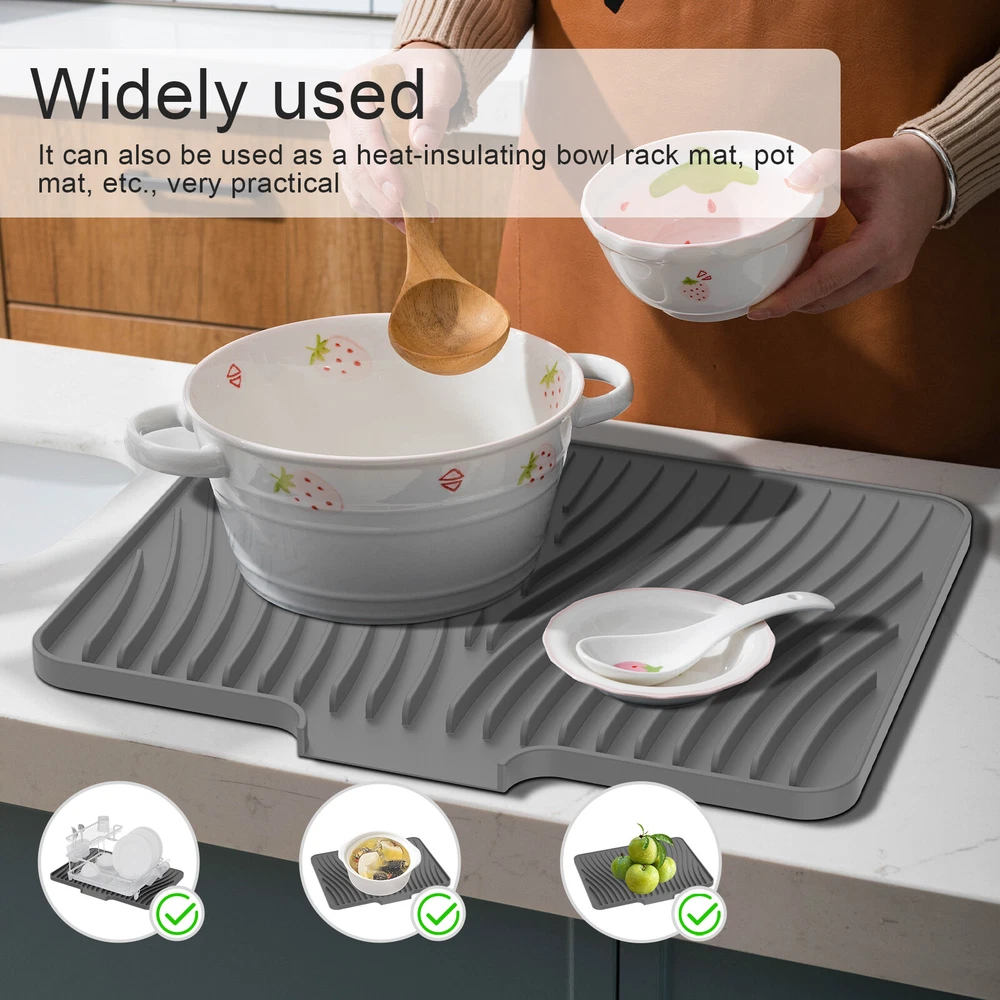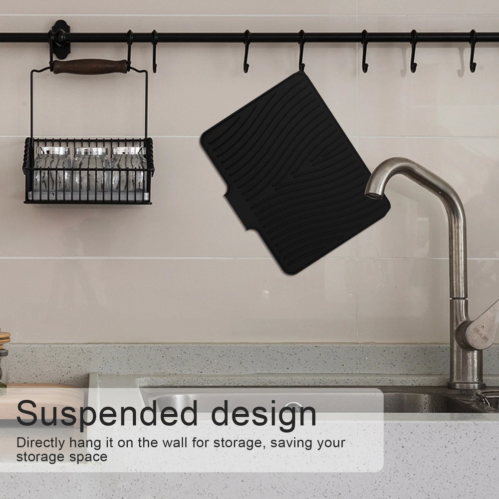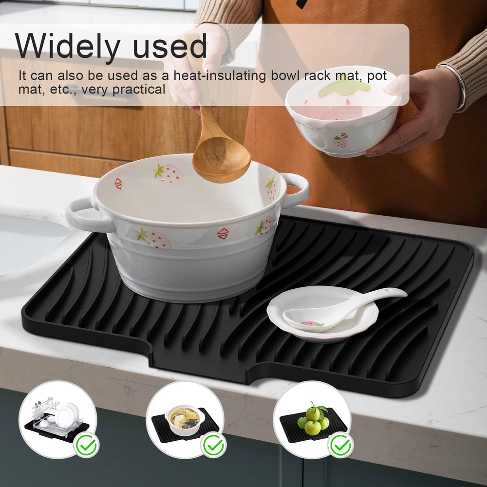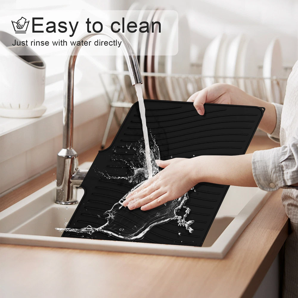 2 Pcs Silicone Dish Drying Mat Nonslip Dish Drainer Mat with Drain Lip♔