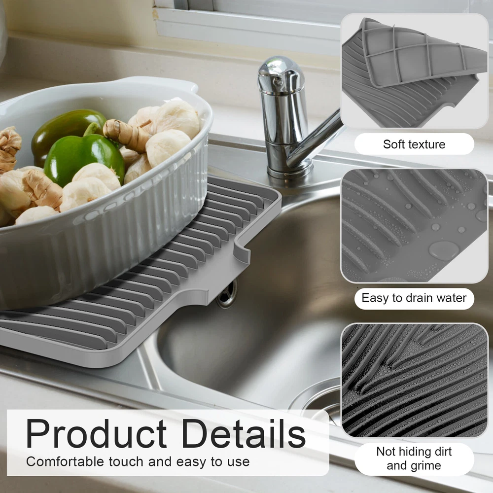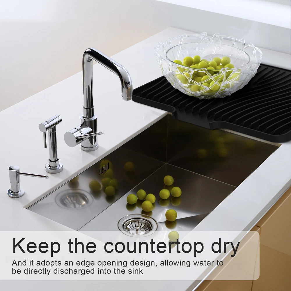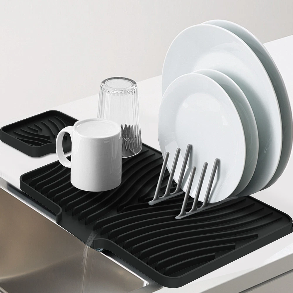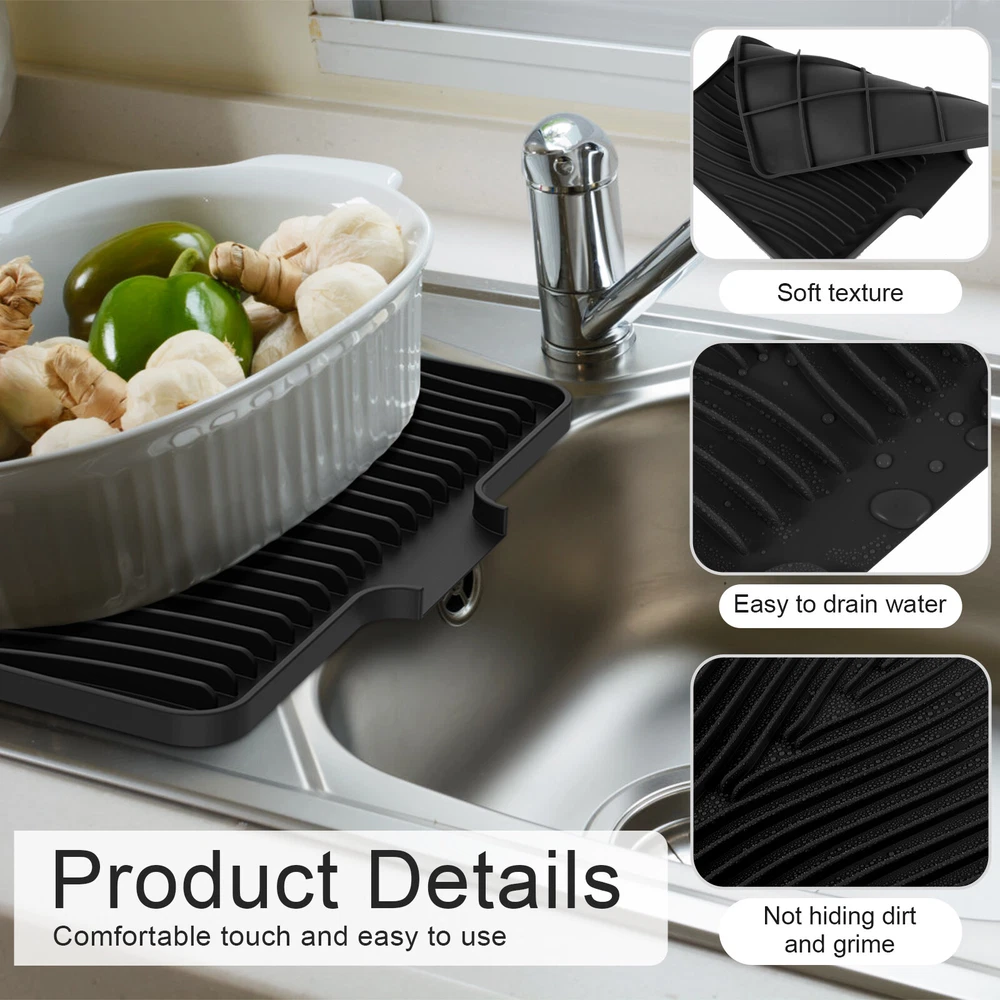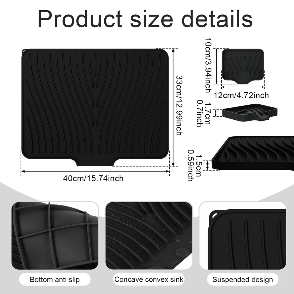 2 Pcs Silicone Dish Drying Mat Nonslip Dish Drainer Mat with Drain Lip♔