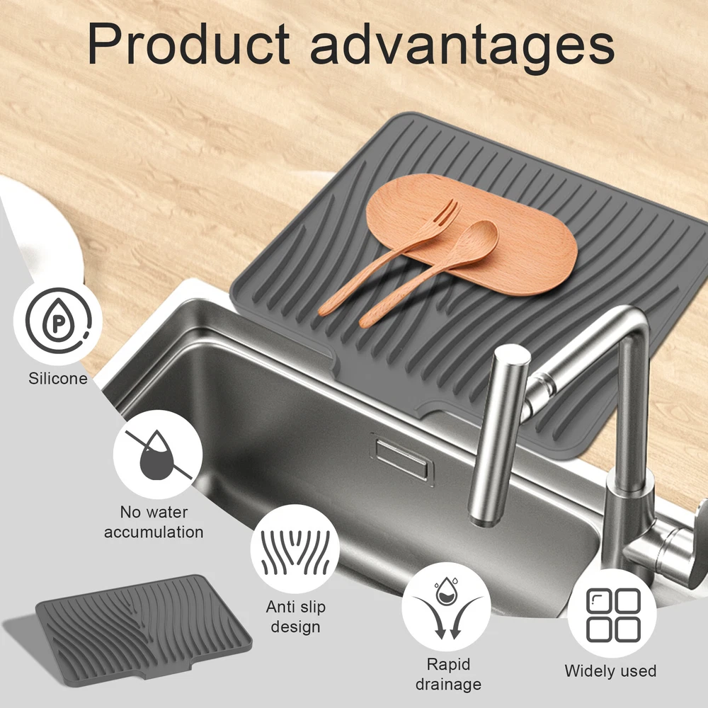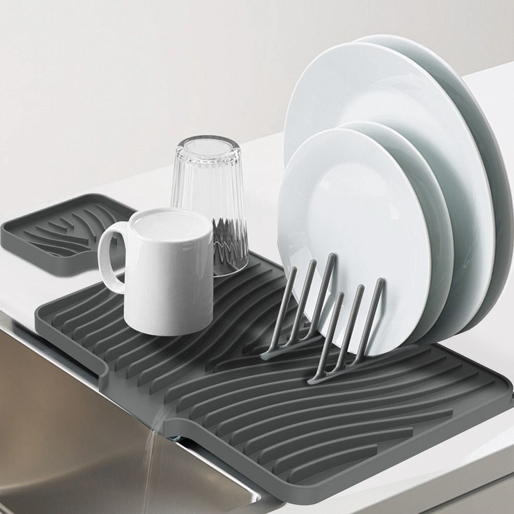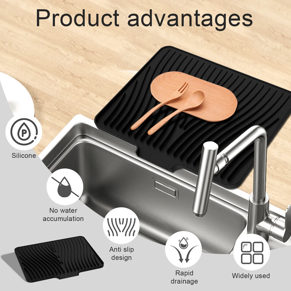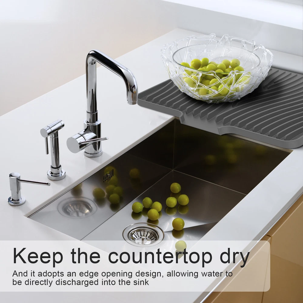 2 Pcs Silicone Dish Drying Mat Nonslip Dish Drainer Mat with Drain Lip♔