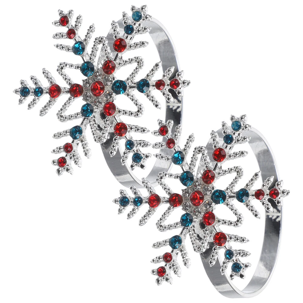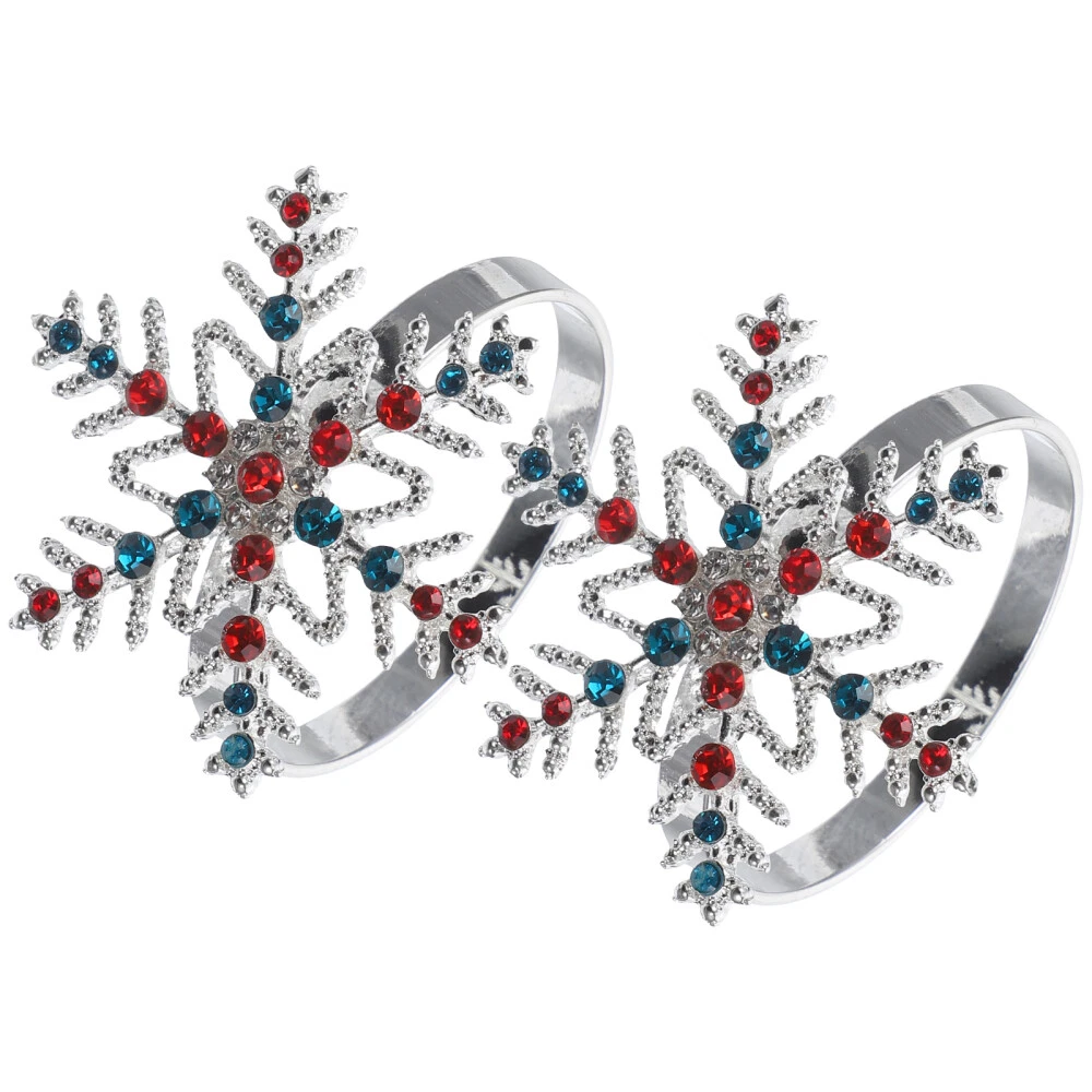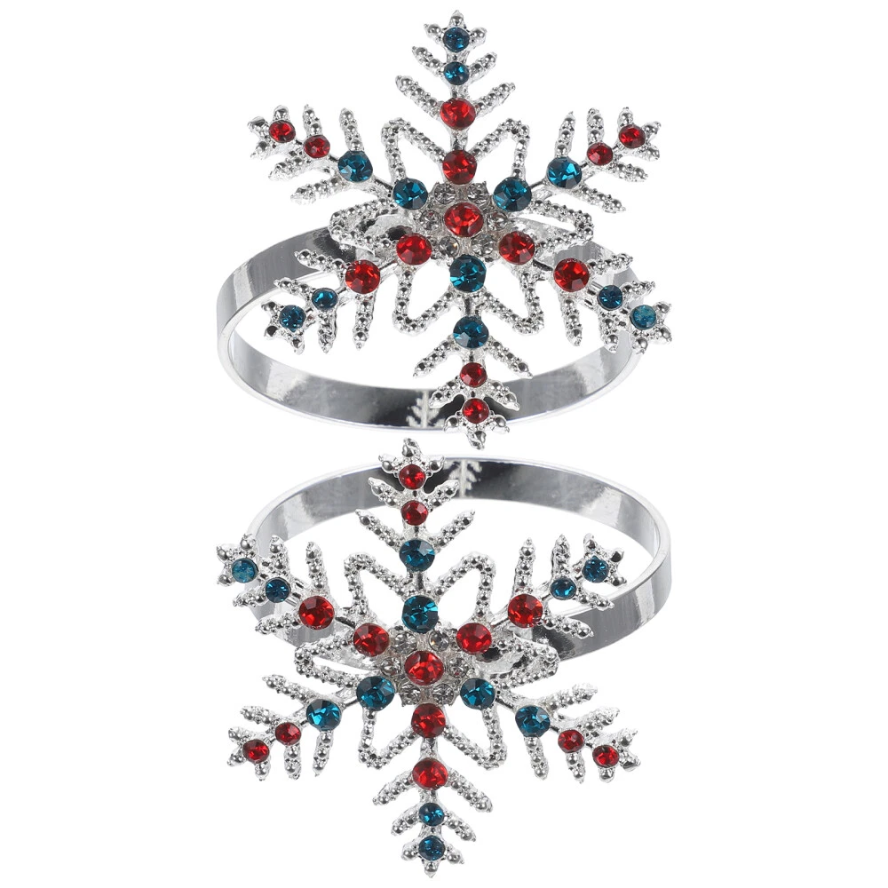 2 Pcs Snow Rhinestone Napkin Rings Holiday Reception Decoration