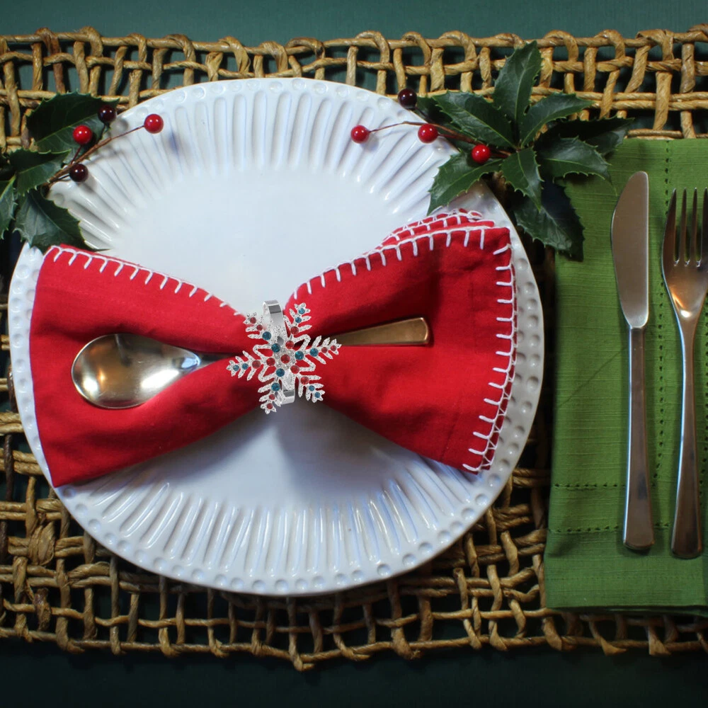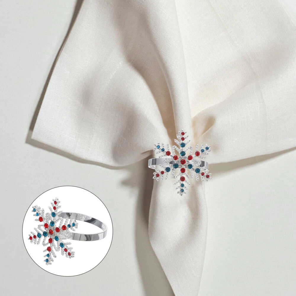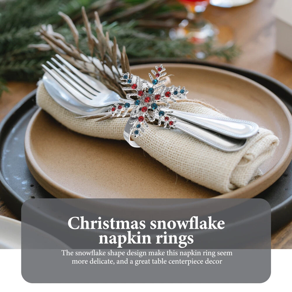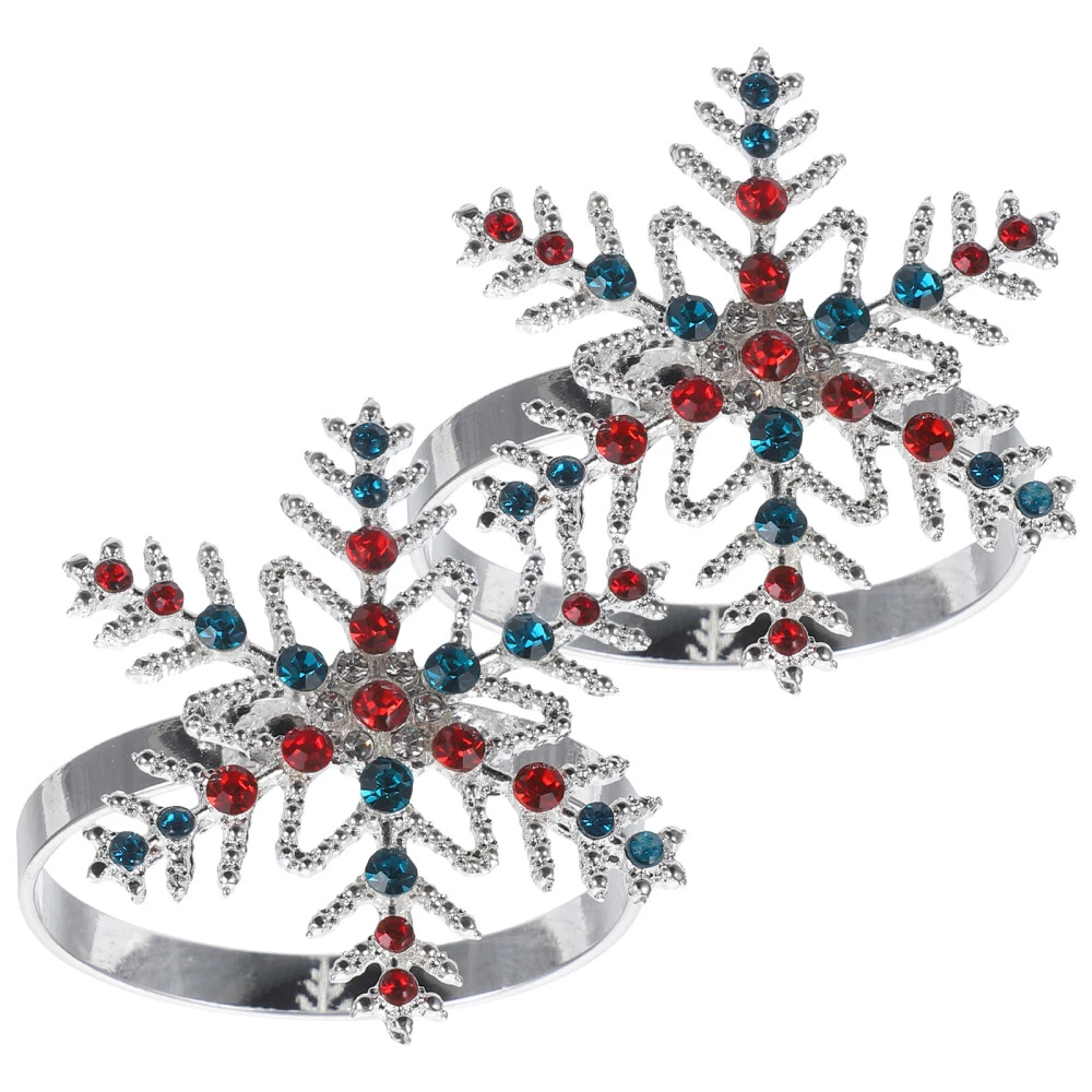 2 Pcs Snow Rhinestone Napkin Rings Holiday Reception Decoration