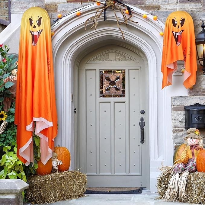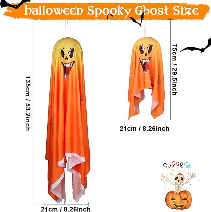 About this item đ»ăHalloween Decoration Lightsă FUNIAO Halloween Ghost Decorative Lights Set includes a 23.9in and 53.2in Halloween ghosts, 2 sizes meet your different decorating idea, made of high quality cloth cover, and bright string of lights, catch the eye of your neighbors. Its scary expression design add Halloween atmosphere to your home. đ»ăSpooky and Attractive Ghost Ornamentsă Outdoor Halloween ghost decorations are made of high quality materials, 2 string lights powered by 2 AA batteries (Batteries NOT included), create sparkle and shine Halloween vibe. The plastic head frames and white fabric pieces create the ultimate ghostly atmosphere even not light up. Perfect for indoor and outdoor Halloween decorations. đ»ăPerfect Ghost Prop Decorationă Easy to assemble, 2 sizes to meet your different decorating needs. Simply cover the cloth on the plastic shell and hang it to create an impressive Halloween spooky haunted house. đ»ăClassic Halloween Ghostsă With sturdy twine at the top, you can easily hang them on the wall, front door, patio, lawn, garden, ceiling, yard, outdoor tree, and anywhere else for a chic Halloween atmosphere.