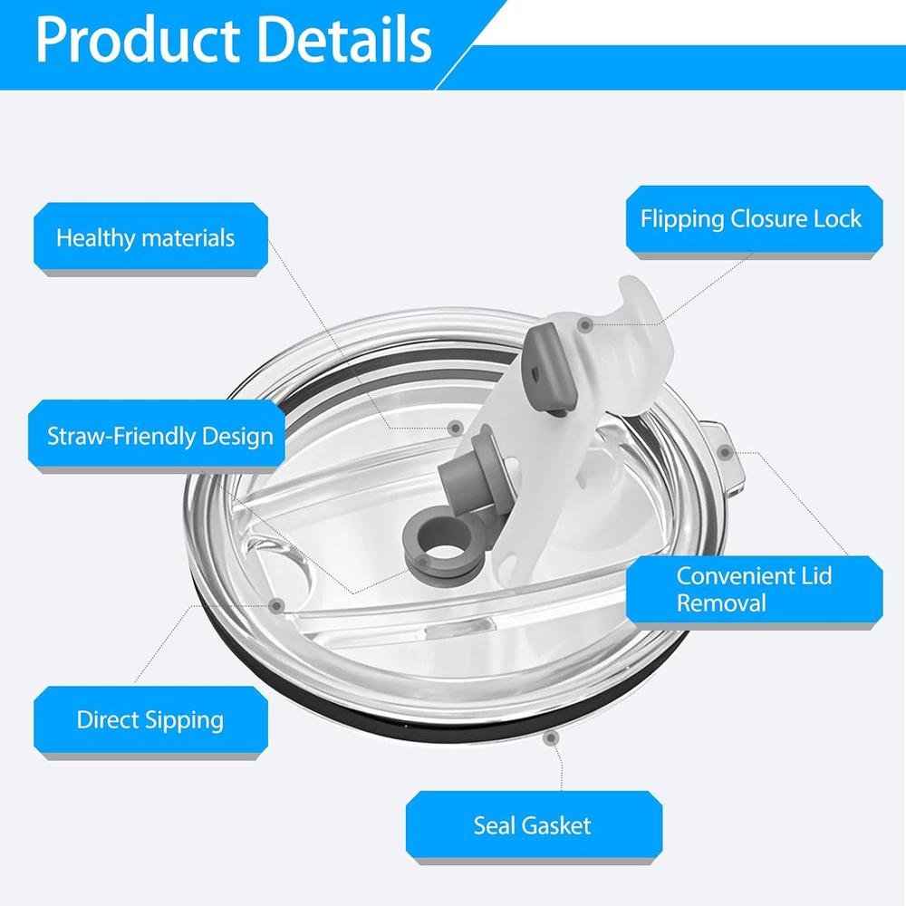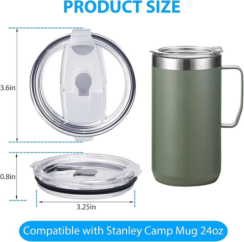 2 Pcs Replacement Lid Compatible with Stanley Camp Mug 24 Oz, Spill Proof Mug Cup Lids with Sealing Silicone Ring, Bpa-Free, Dishwasher Safe for Drinking Cup Cover, Clear Perfect Fit for Stanley Camp Mug 24 oz: Designed specifically compatible with Stanley Camp Mug 24 oz, this replacement lid ensures a snug, secure seal that prevents leaks and spills, making it perfect for on-the-go use or everyday sipping at home or the office Spill-Proof with Silicone Ring Seal: Built with a premium food-grade silicone sealing ring, this lid offers strong spill-proof performance to keep your beverage safely contained, whether you’re hiking, camping, commuting, or just relaxing at your desk BPA-Free and Safe for Daily Use: Made from BPA-free, non-toxic plastic, this clear replacement lid is safe for hot or cold drinks, ensuring peace of mind for daily use without chemicals leaching into your beverages Dishwasher Safe and Easy to Clean: Forget handwashing—this mug lid is completely dishwasher safe for quick, hassle-free cleanup. The smooth surface and detachable silicone ring also make it easy to rinse and dry after every use Durable and Crystal-Clear Design: Constructed with tough, crack-resistant plastic, this clear lid lets you see your drink level at a glance and is built to last through daily wear and tear, perfect as a long-term replacement or backup lid Compatible with Stanley Camp Mug 24 oz, this spill-proof replacement lid features a BPA-free, dishwasher-safe, and durable design with a tight silicone seal to prevent leaks, making it ideal for daily use at home, work, or outdoors—enjoy your hot or cold drinks with confidence, clarity, and zero mess Item model number EISTMKBG-02 Unit Count 2.0 Count Number of Items 2 Material Plastic Capacity 1.5 Pounds Color Clear Included Components Lid Country of Origin China Item Weight 3.2 ounces Occasion Bachelorette Party Special Feature Leak Proof Product Dimensions 3.35"W x 0.59"H Product Care Instructions Dishwasher Safe Size 24oz 0.59 "h x 3.35 "h. Weight: 3.2 oz Shipping from the USA All of our products are shipped from the USA, ensuring quick delivery to your destination. Payment We offer the following payment methods: PayPal, credit card, bank transfer, and eBay's secure payment system. Free Shipping & Free Returns Shipping within the USA is FREE. Additionally, any return is absolutely free for you. Risk-Free Purchase You have the option to return an item within 30 days without any justification. We cover the return shipping costs! Fast Shipping We ship immediately upon receipt of payment. Generally, the package is delivered within 2-3 days in the USA. If it takes longer, we will contact you. Quality and Costs Made in Europe, USA, China No customs fees or additional charges Total satisfaction guarantee Invoice with declared VAT available upon request in .pdf format Feedback Your feedback is very important to us. After you pay for your purchase, you will automatically receive positive feedback from us.