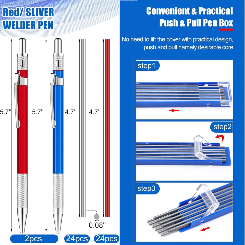 Store New Arrivals Add to Favorite View Feedback Contact 2 Pcs Welders Pencil with 48 PCS round Refills Mechanical Pencils Metal Welding Description Item model number OC-220427-A Closure Twist Writing Instrument Form Mechanical Graphite Pencil Number of Items 1 Color Red, Silver Material Type Wood, Alloy Steel, Glass, Plastic, Metal Brand Gersoniel Line Size 2 Millimeters Grip Type Knurled Package Dimensions 5.87 x 5.08 x 0.51 inches Manufacturer Part Number OC-220427-A Item Weight 4.6 ounces Age Range (Description) Adult Ink Color Red, Silver Manufacturer Gersoniel Point Type Round Tip Type metal Size 1 Count (Pack of 1) Sufficient Quantity: it comes with 2 pieces of welders pencil and 48 pieces of refills in 4 boxes, 12 pieces in each box, sufficient quantity to meet your use, sufficient quantities to meet your daily using needs Illuminate metal marker: the 2 mm round refills can lay out an illuminate marker that is not easily erased compared with soapstone pen, and the reflective marking can make a visible sign on metal and oily surface for welder and pipe fitter Simple to use: each welders pencil has a built in sharpener, convenient for you to sharpen the refill quickly, and the top has a clip that can be fixed to clothing, bringing you a lot of convenience Wide application: the design of the refill extends the life of the carpenter pencils, easy to use, strong and hard to be broken, suitable for carpenters, builders, businessman, or anyone who needs a tough pencil that will mark a variety of surfaces Practical gift: these welders pencil can also be applied as gifts for family members, friends, relatives, coworkers, neighbors, and other people you care about, so you can send them to show your love and concern, and to strengthen your relationships Product Description Heavy-duty metal prevent breakage Press pen cap to get refill Convenient pocket clip Sharpener is screwed into the top of the pencils ABOUT US We offer the best prices around on high quality products. Our E-store includes media such as books, movies, music and games while offering electronics, toys, sporting apparel, clothing, tools, general home, garden items and more. SHIPPING We are always working hard to ensure your package arrives as soon as possible. Please understand that some factors like weather, high postal traffic, and the performance of shipping companies are outside of our control. We offer free shipping to the lower 48 states and ship within 2 business days of payment, usually sooner. We do not accept P.O. Boxes. Please provide a physical address. RETURNS We offer a 30-Day Return Policy on items which you are not completely satisfied with. You have the option for a full-refund or an exchange of the item. No returns are available on items shipped outside of the USA. PAYMENT We accept PayPal. CONTACT US This page content is yet to come Please ad us to your favorite seller and visit again later Thank You CUSTOMER SATISFACTION We try our very best to make sure every customer is completely satisfied. If there's a problem, message us! We're happy to help.